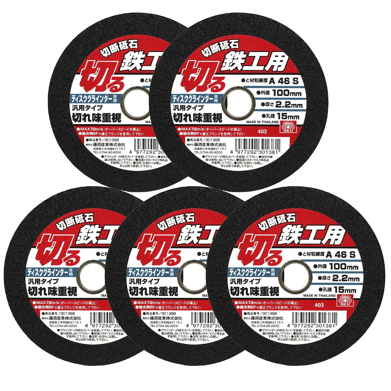 イーバリュー(E-Value) ディスクグラインダー用切断砥石 鉄工用 5枚 100×2.2×15mm