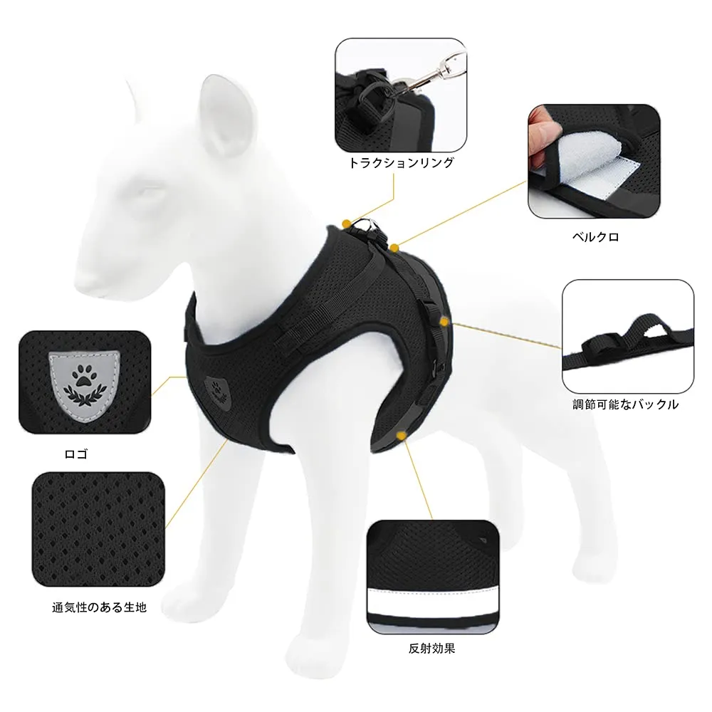 NC メッシュ 犬用 ハーネス 胴輪 反射材料付き リード セット 超小型犬 小型犬 子犬 猫 散歩/訓練/お出掛 ペット はーねす 安全 抜けない 軽量 調節可能 通気性が