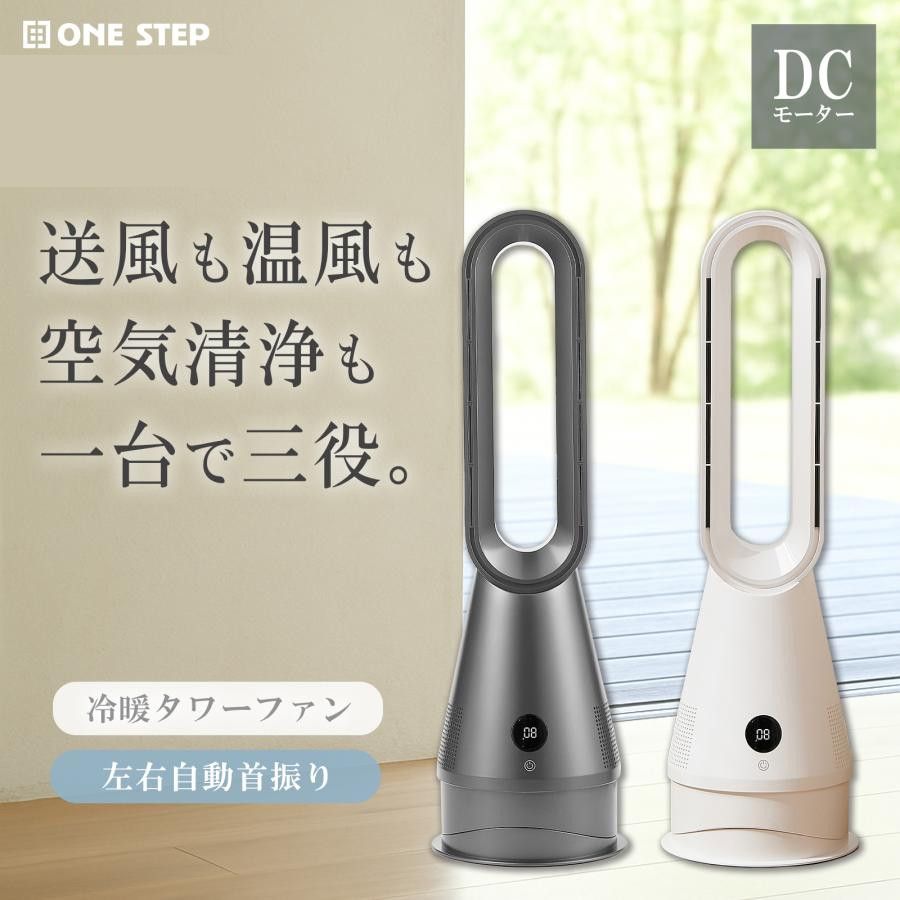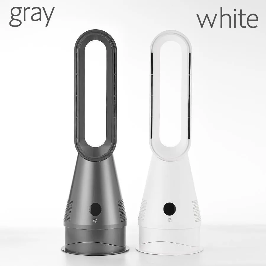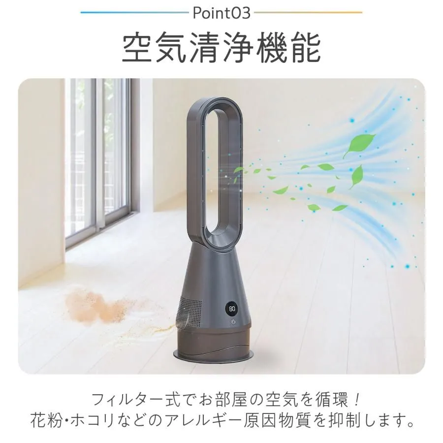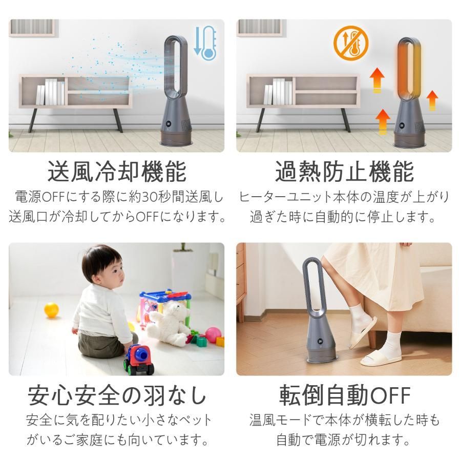 #2922 電気 セラミック ファン ヒーター グレー 送風 暖房 空気清浄 1台3役 省エネ リモコン 速暖 温風 冷暖兼用 タワーファン 左右 自動首振り小型 1300w ※一部地域離島別途配送料有