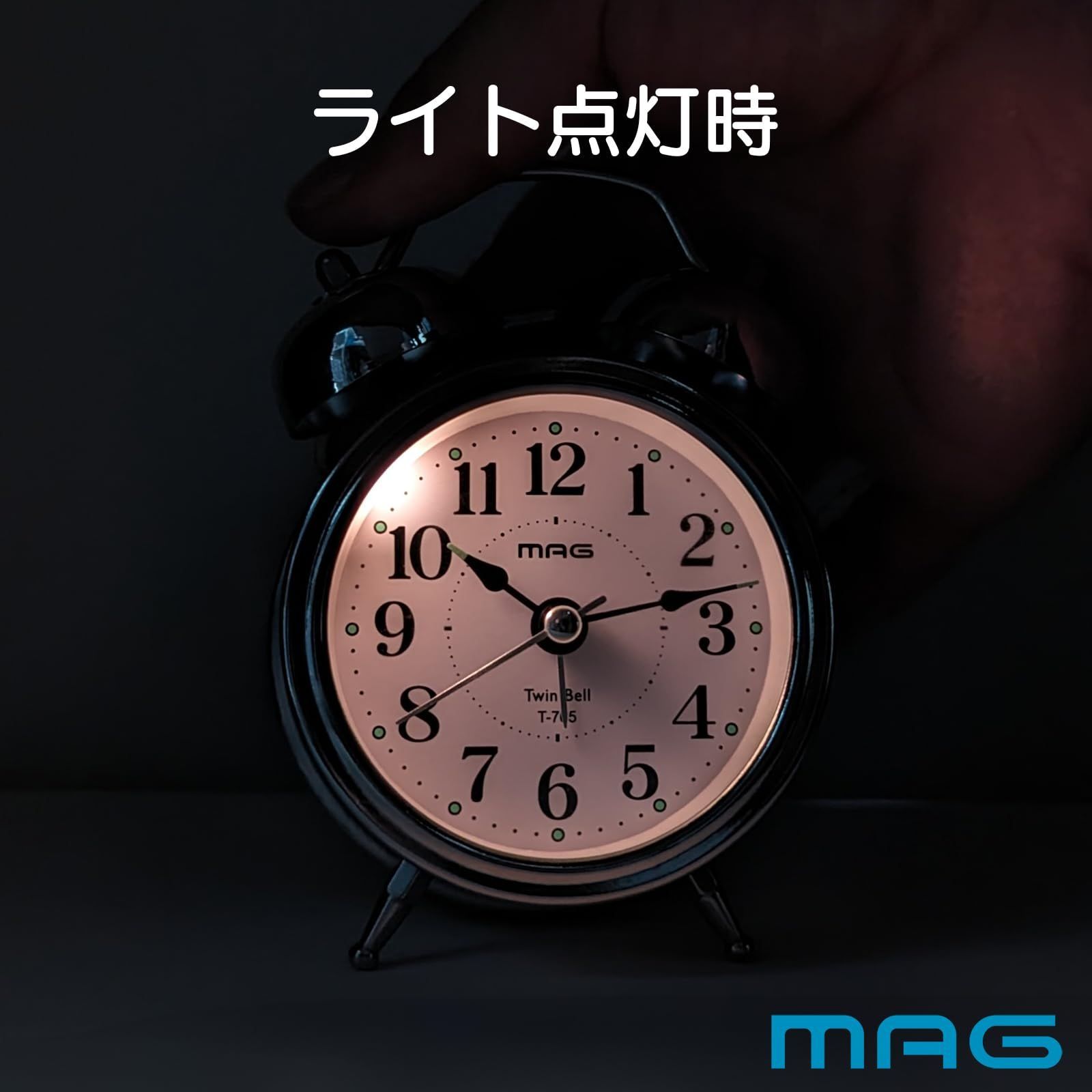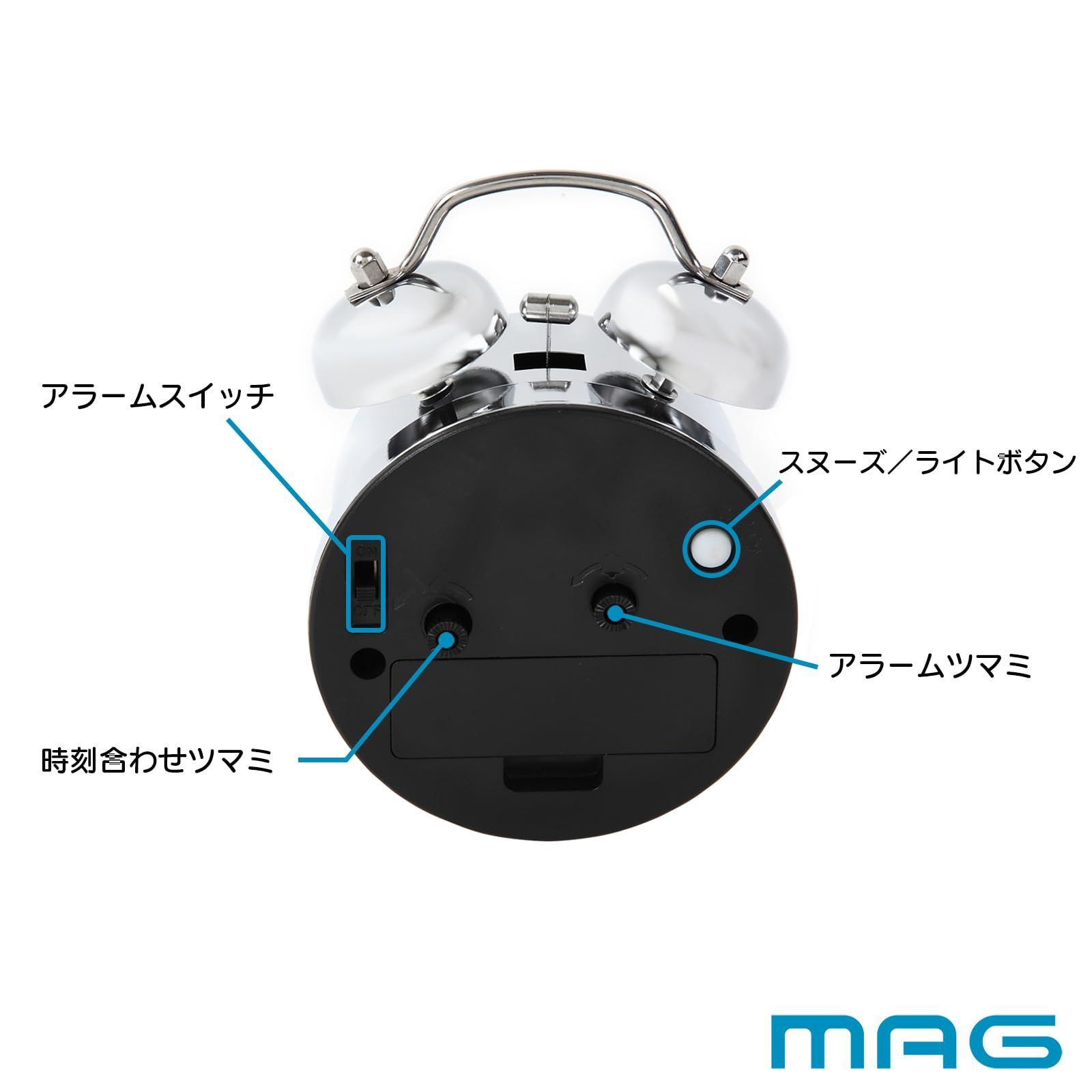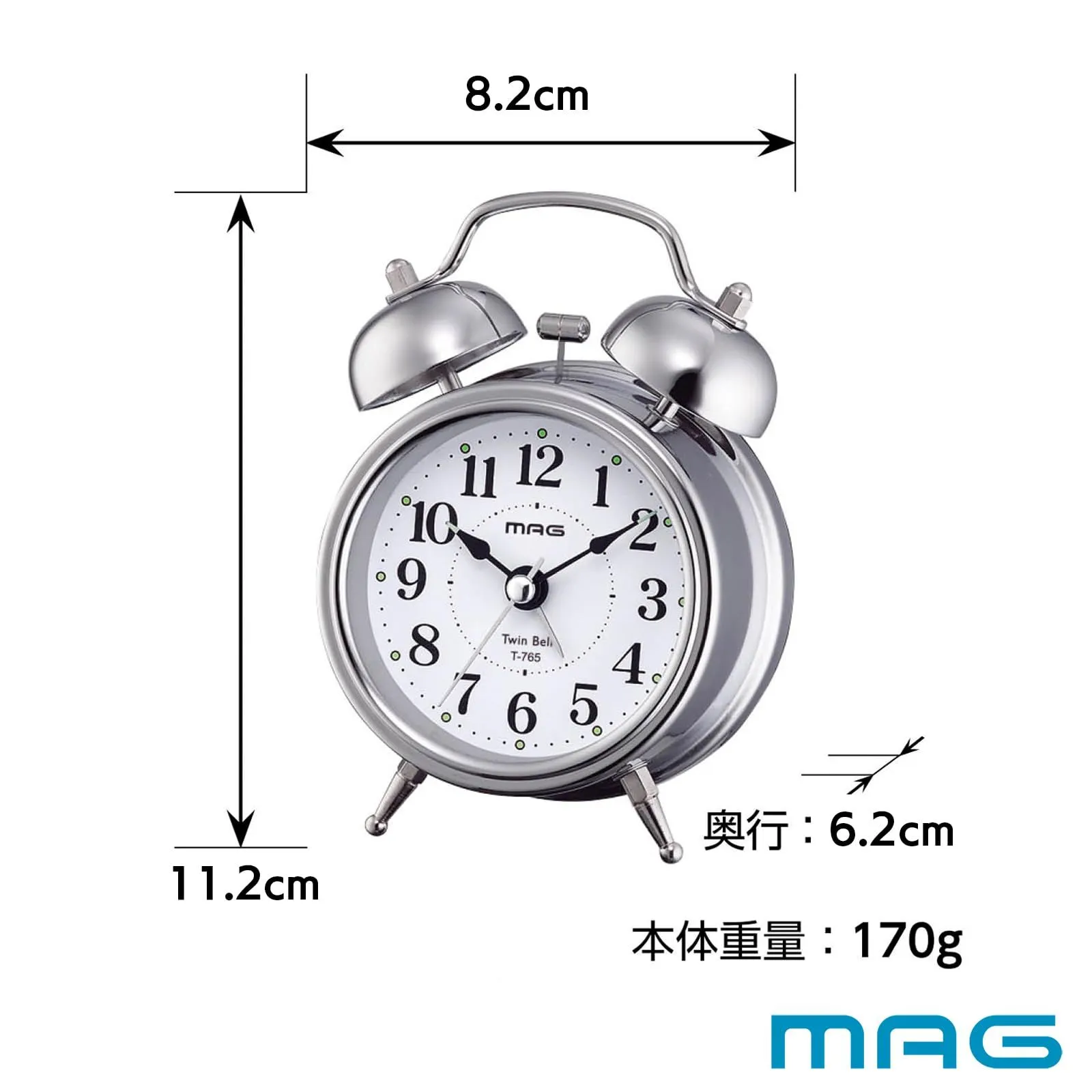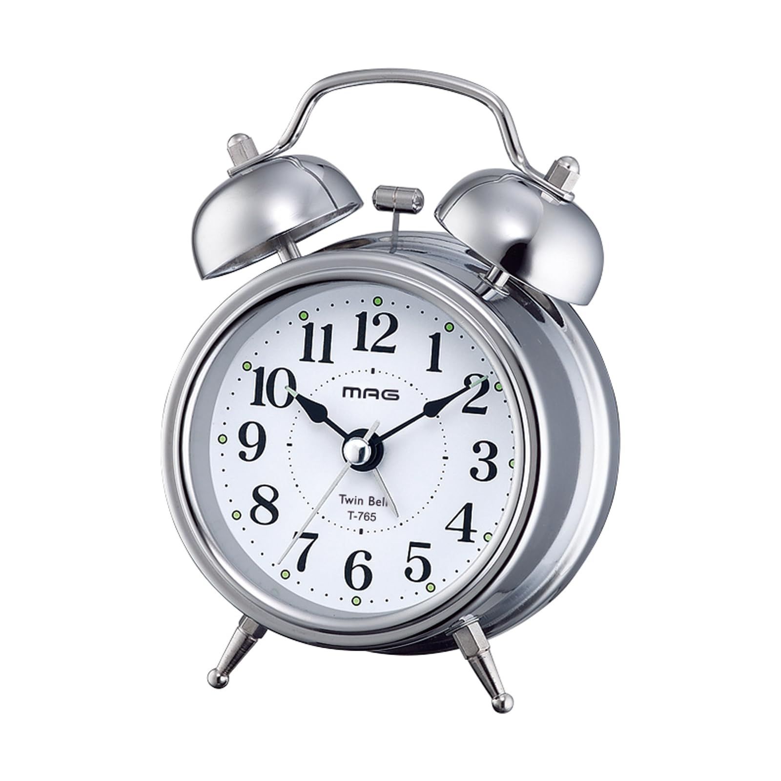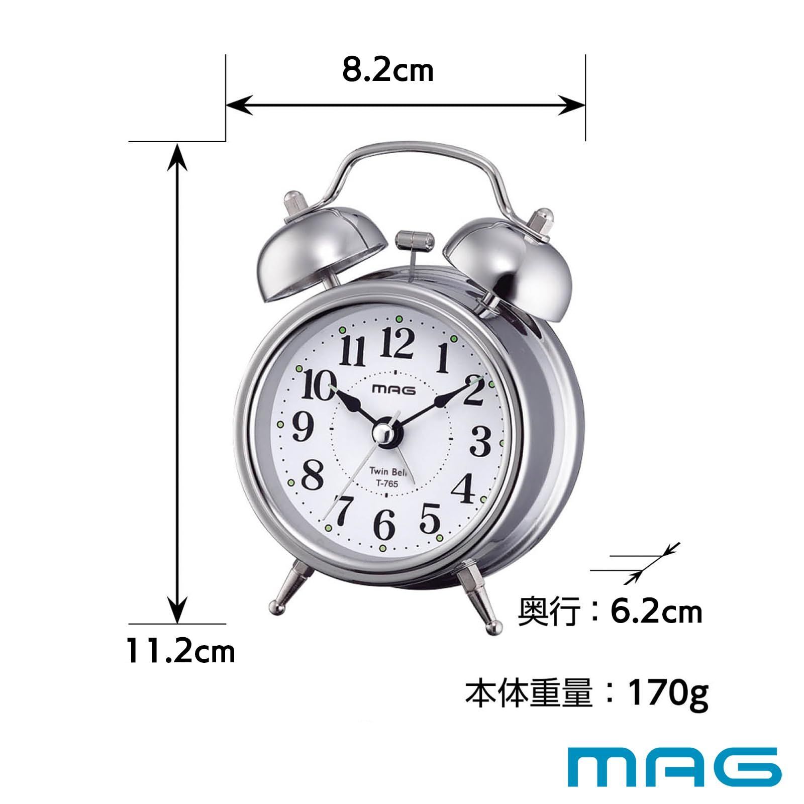 MAG(マグ) 目覚まし時計 置き時計 小型 小さい かわいい ツインベル アナログ 静音 連続秒針 ベル音 アラーム スヌーズ ライト シルバー ベルズミニDX T-765 S-Z ノア精密