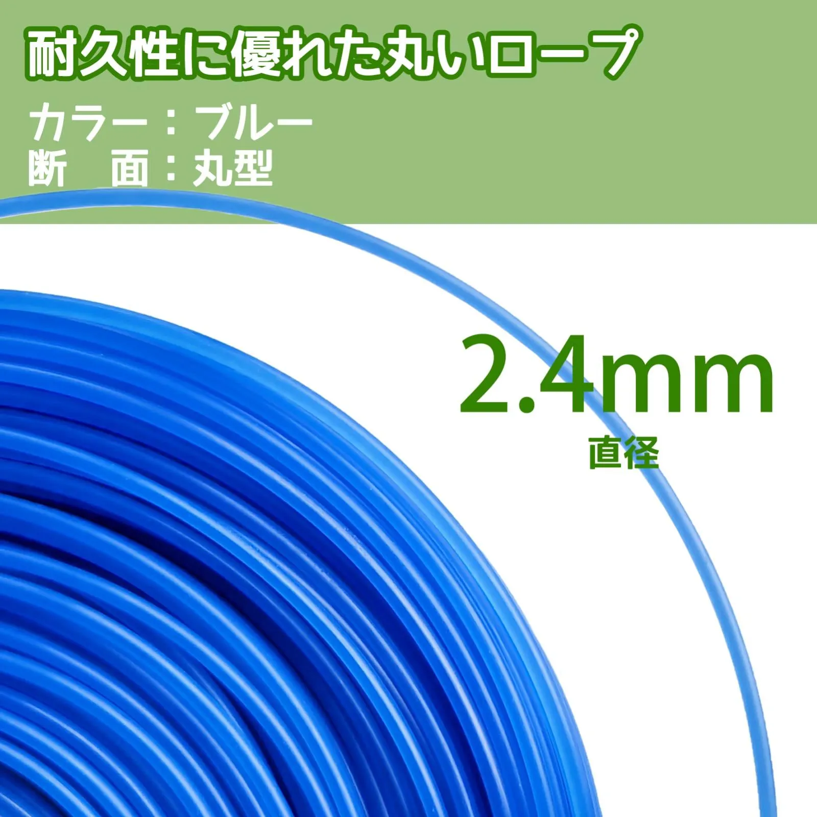 DY.2ten 草刈用 ナイロンコード 直径2.4mm 全長100m 草刈り機 替えコード 耐磨耗性 丸型 メンテナンス簡単 芝刈り機用交換用ロープ 芝草 雑草 ブタクサ ヨモギ 芝刈り縄 ブルー
