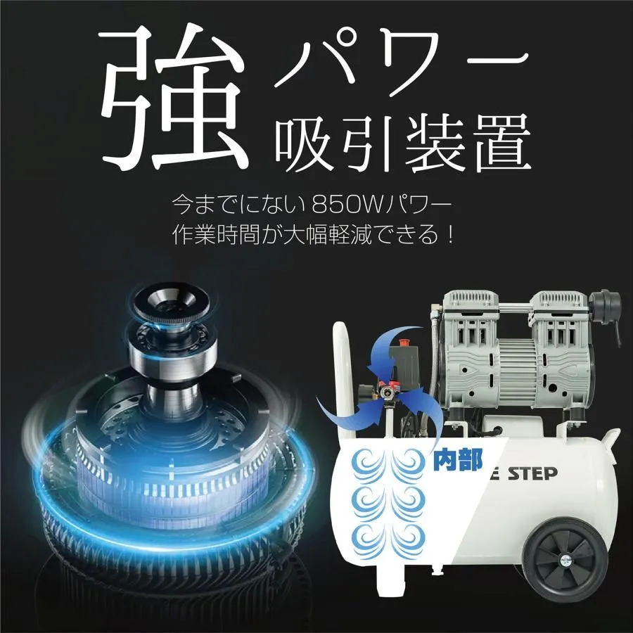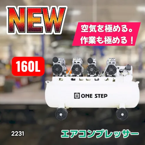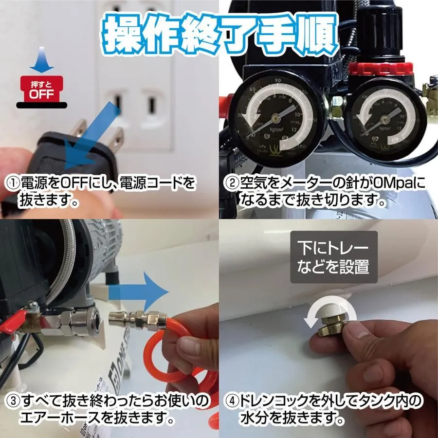 また、オイルレスの静音エアーコンプレッサーなので、メンテナンスも簡単です。