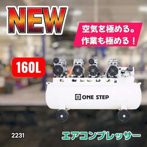 #2231 エアーコンプレッサー 160L ホワイト 200V オイルレス 静音 圧力計 業務用 車 タイヤ 空気入れ 大容量 電動コンプレッサー ※一部地域離島別途配送料有