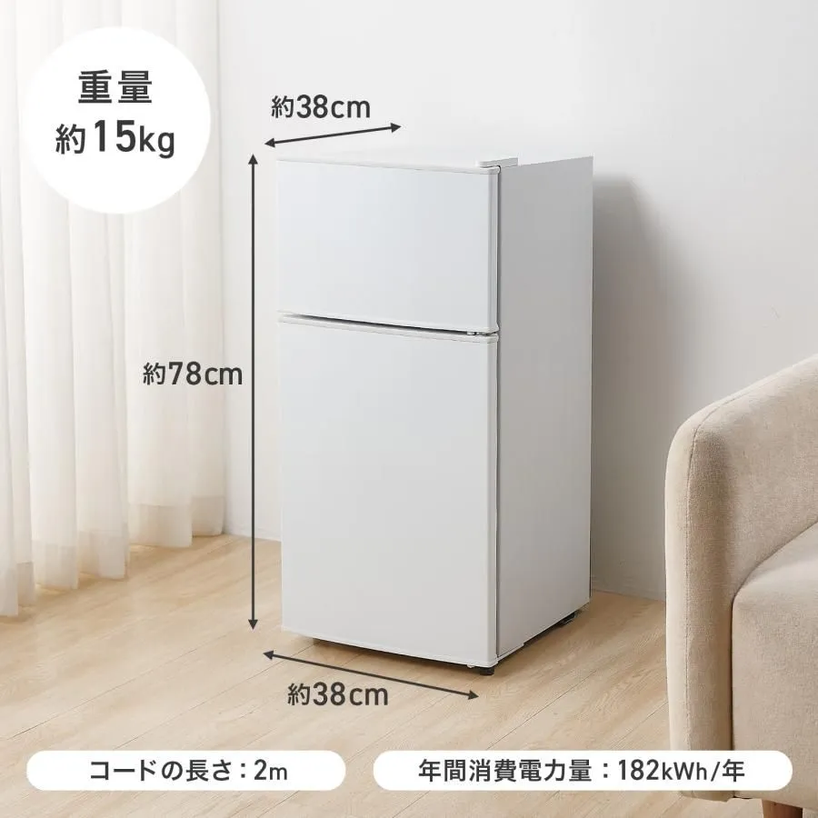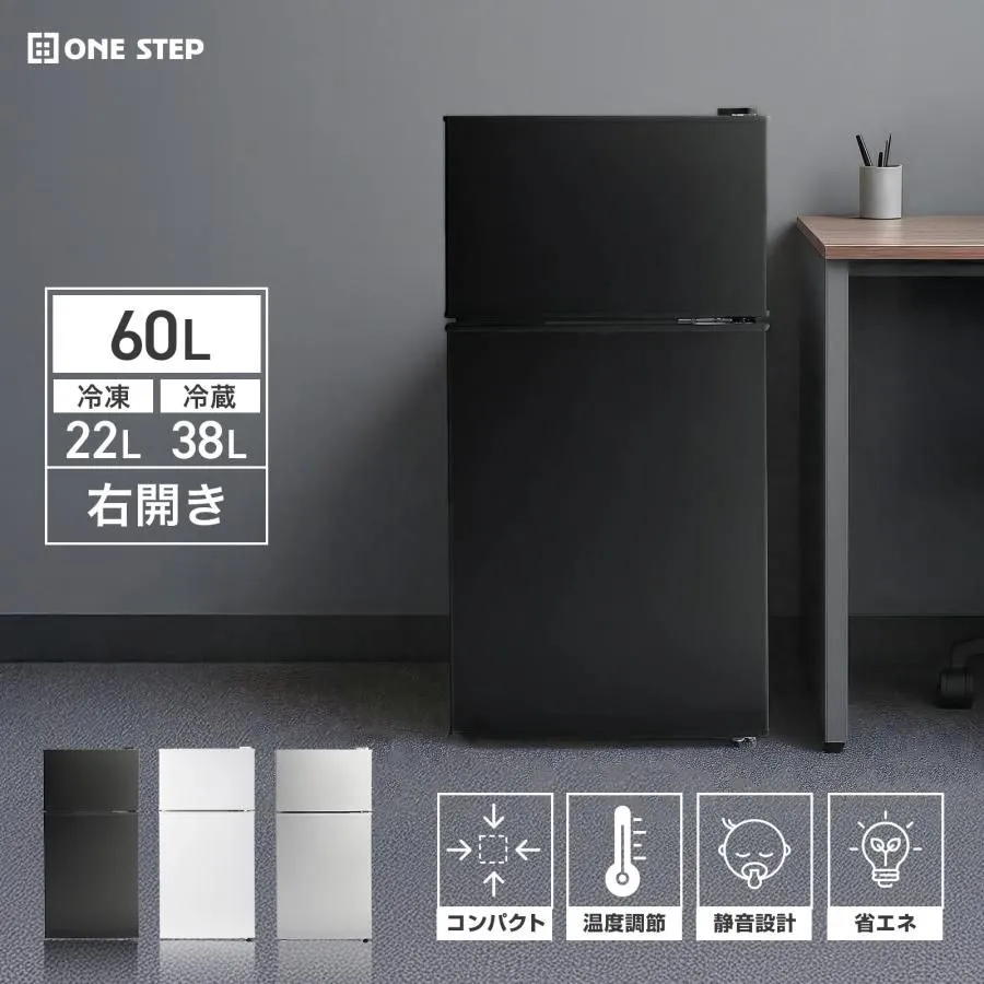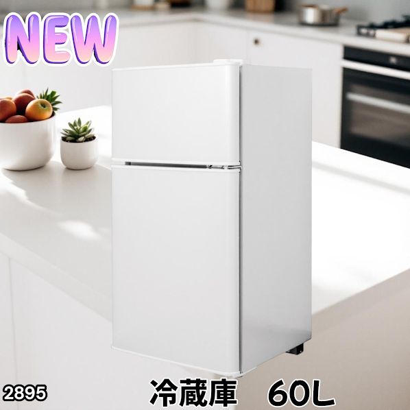 #2895 冷蔵庫 2ドア 右開き ホワイト 60L 冷蔵室 38L 冷凍室 22L 1人暮らし コンパクト 省エネ 静音 設計 温度調整 ミニ 小型 家庭用 上段冷凍庫 業務用 ※一部地域離島別途配送料有