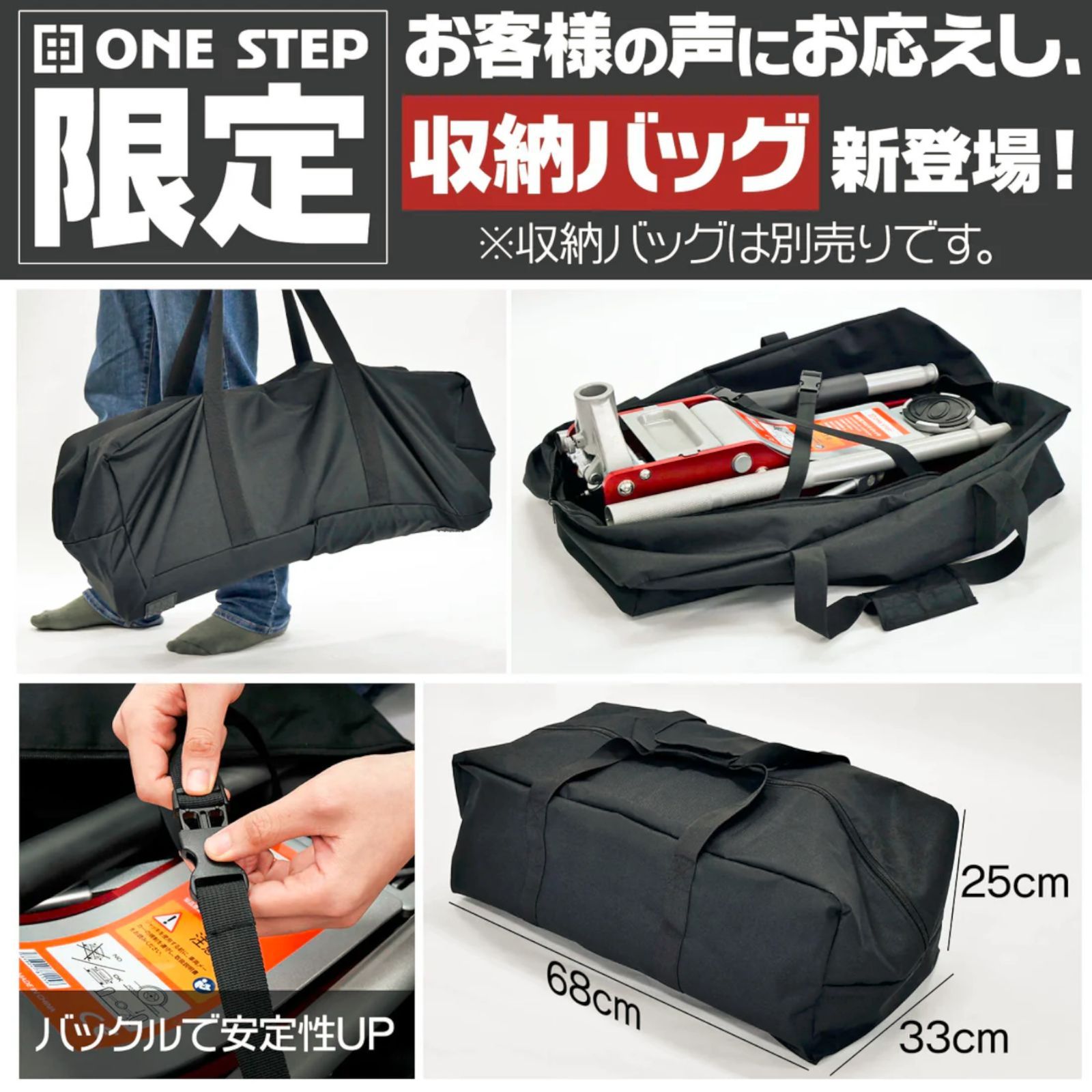 #2485 ジャッキ 収納 バッグ ブラック W68×D33×H25 バックルで安定性アップ ※北海道、沖縄本島、沖縄の離島、その他離島へは別途配送料有り