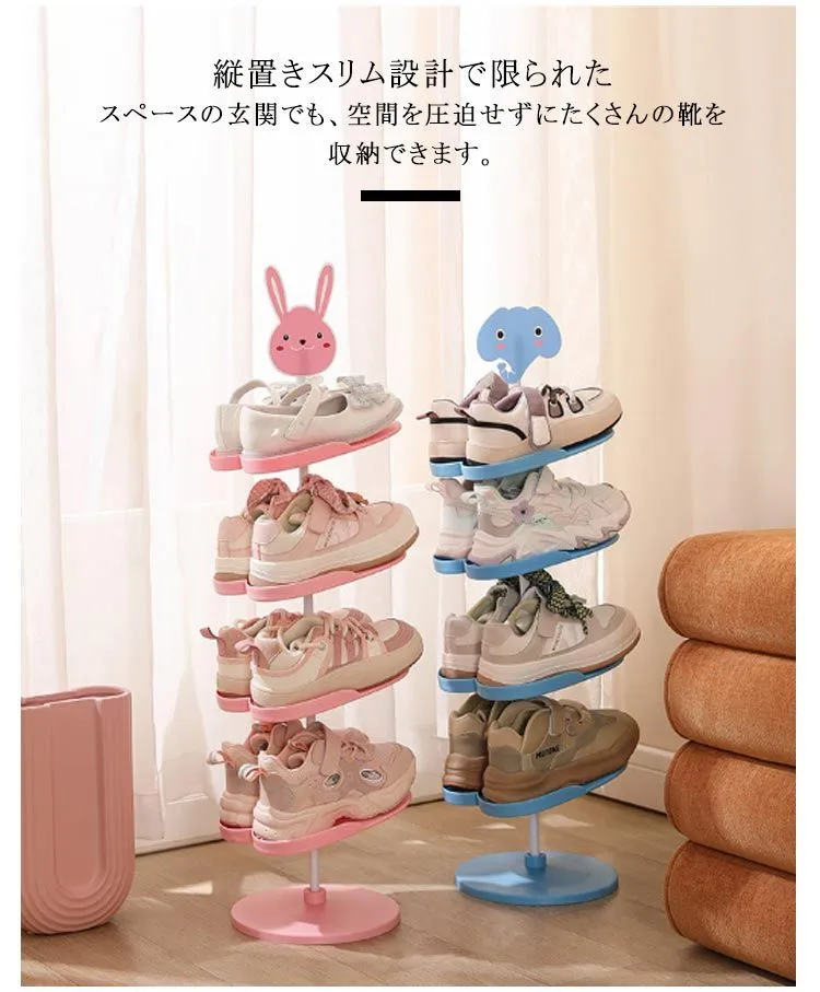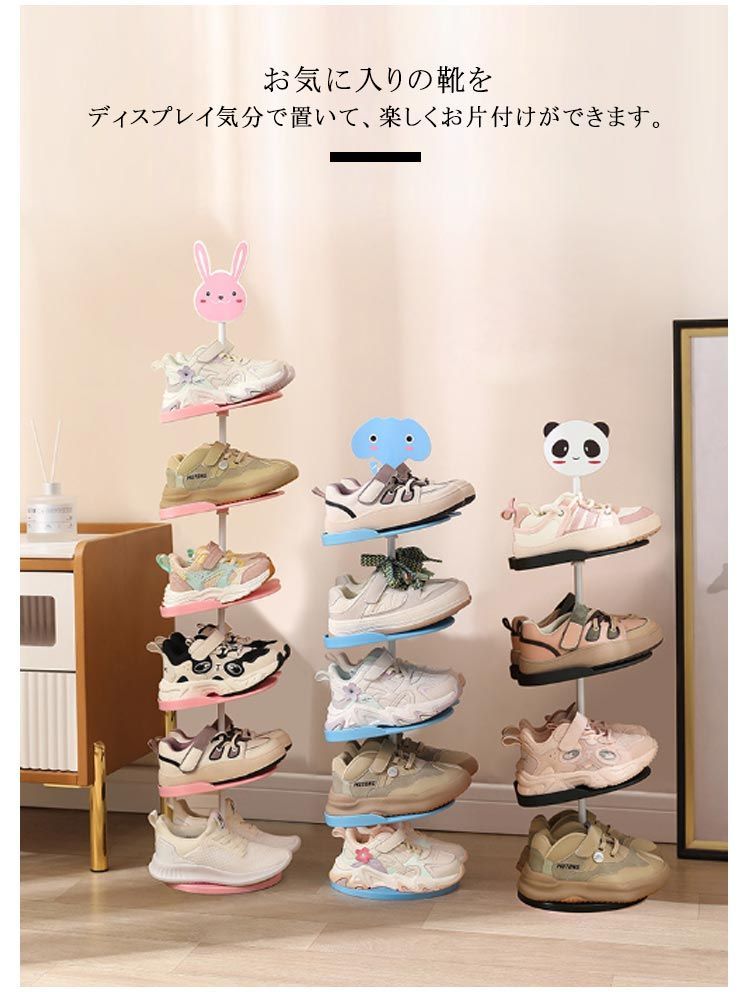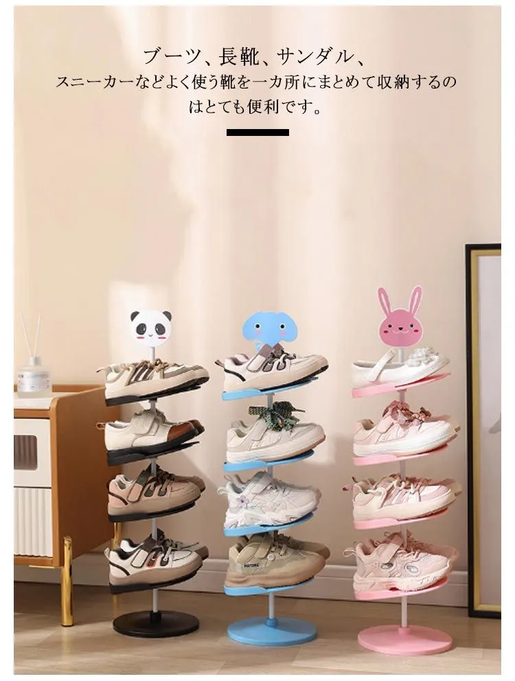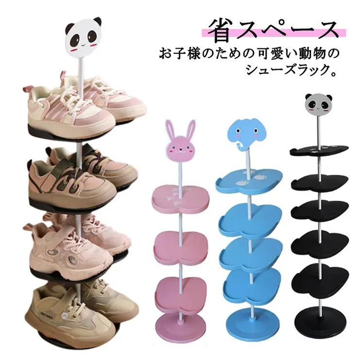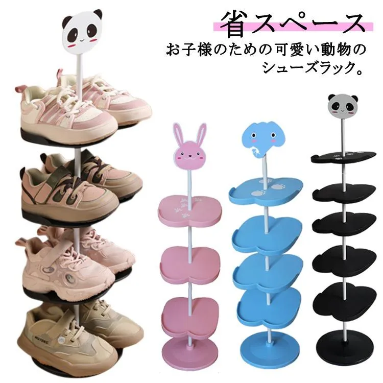 シューズラック 靴ラック キッズ 子供用 可愛い 動物 シューズ収納 靴スタンド 4段 5段 6段 縦型 省スペース シューズ収納 シューズ収納 玄関収納 スリム 下駄箱 靴箱 パンダ ウサギ 象#hakjf1089