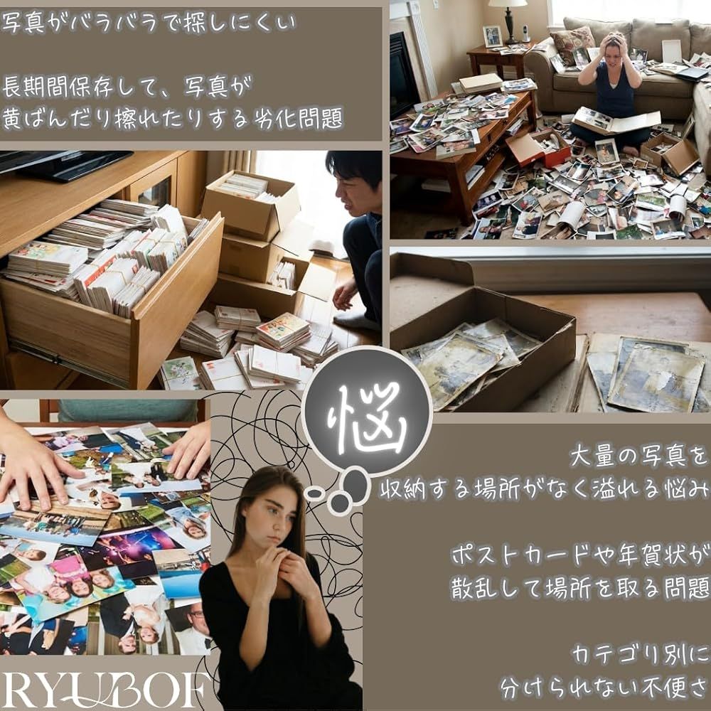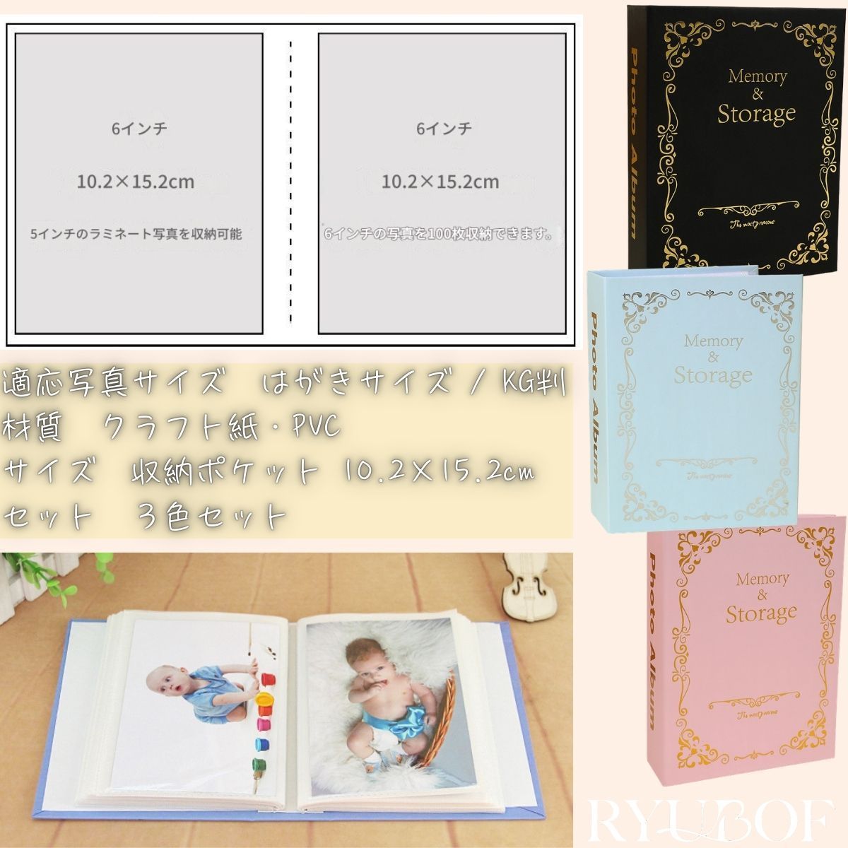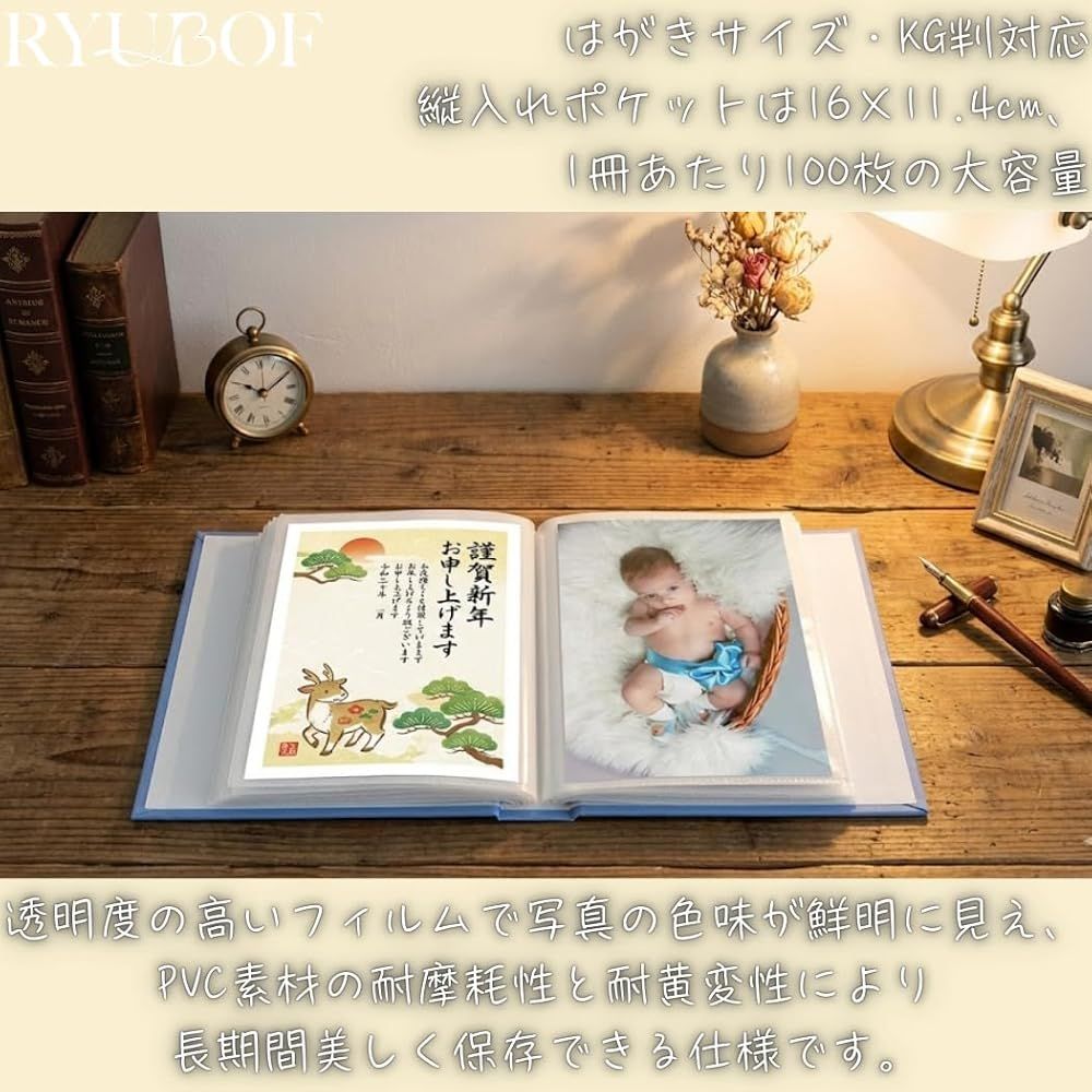 【はがきサイズ・KG判対応】縦入れポケットは16×11.4cm、1冊あたり100枚の大容量で、3冊合計300枚の写真をすっきり整理でき思い出をしっかり保管できます。
