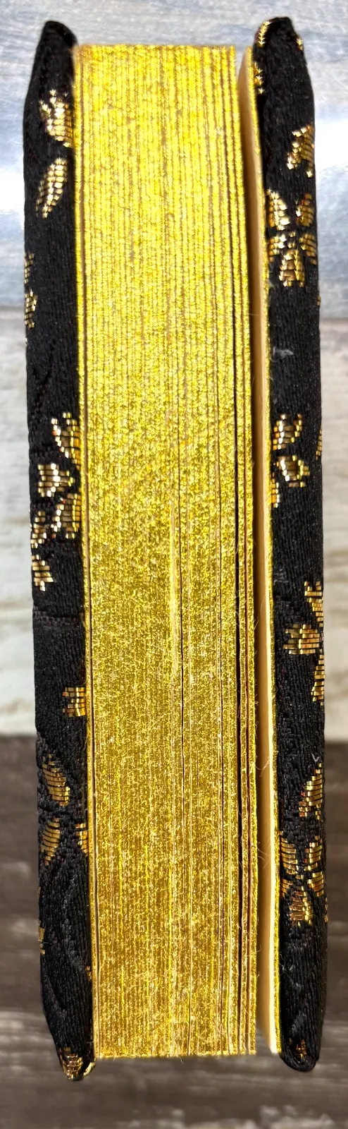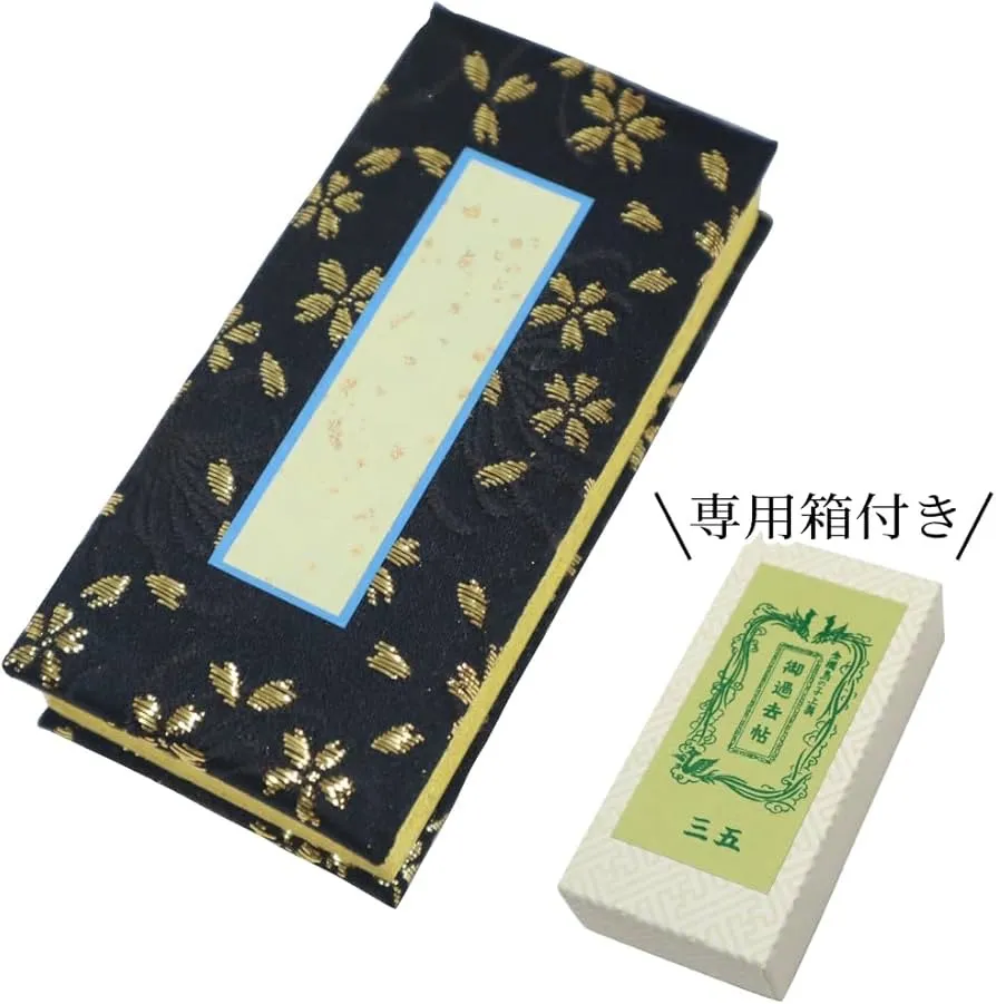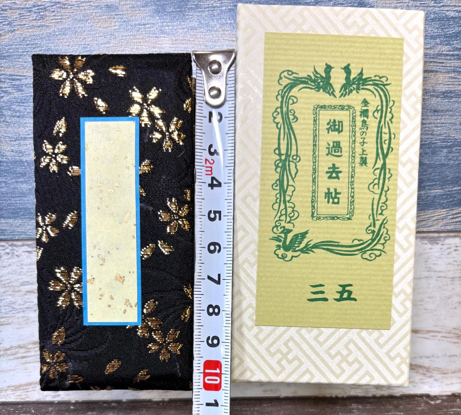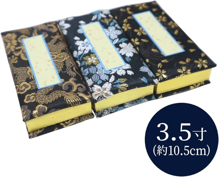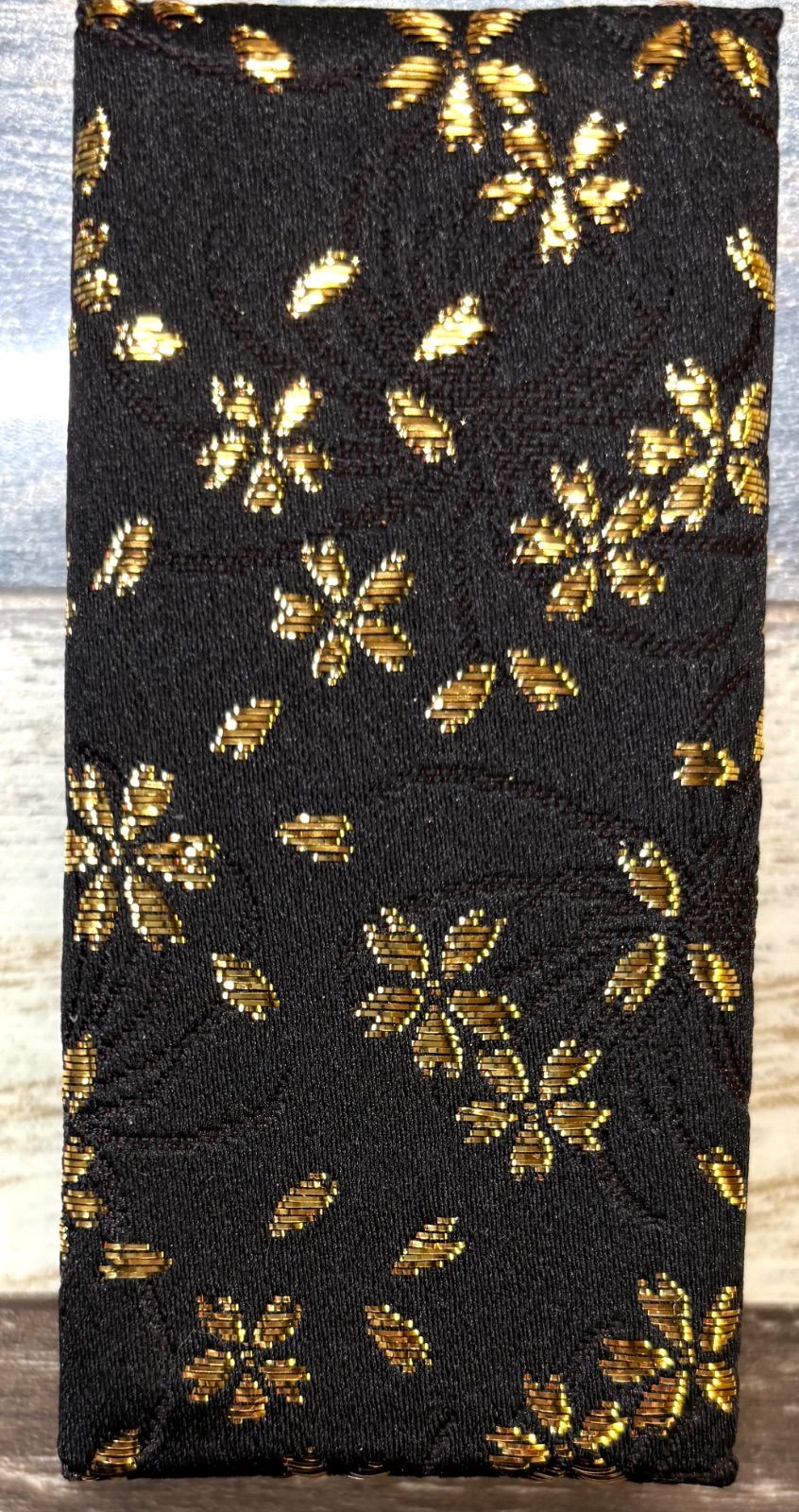 過去帳 金襴 西陣織 3.5寸 和柄 日付入り 専用箱付き 縦10.5cm 横5cm (桜黒金)