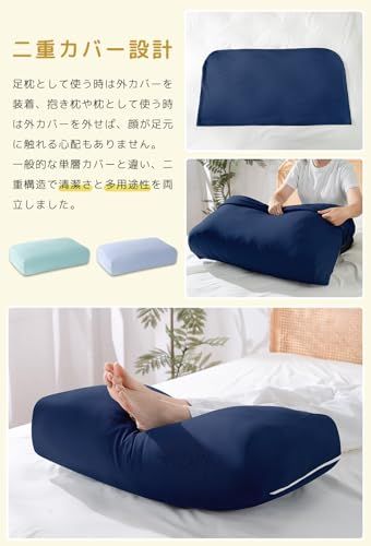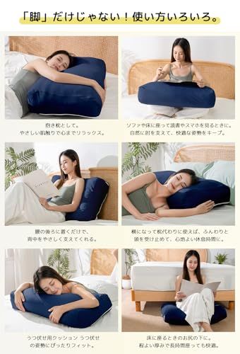 日和葉(HIYORIBA) 足枕 就寝用 足置き クッション 背もたれ 膝枕 【日本企画】 竹繊維素材 【補充綿付+高さ調節可能】足上げ枕 快眠グッズ 洗えるカバー フットレスト ネイビー/