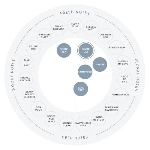 【香り】リリーやマグノリアなどの花々の香りが広がる、華やかで清楚な香りが特長です。季節や性別を問わず使いやすく、つける場所によって香りの変化も楽しめます。
