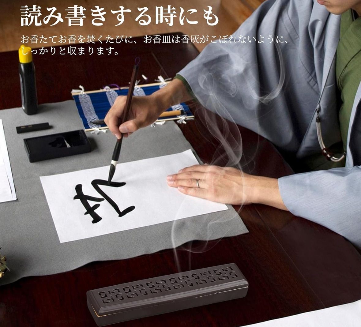【適応場所】横置きタイプのねかせる線香皿で、仏壇用香炉としての使用はもちろん、リビングや玄関などのインテリアにもぴったりのせんこうたてです。ご家族の仏壇だけでなく、瞑想やヨガ、ティールーム、ピアノルーム、書斎などでもご使用いただけます。和室にも洋室にも調和するモダンなインセンスホルダーです。香を焚くことによって、香りが部屋全体を浄化し、供養する者の心身も浄化されると言われています。
