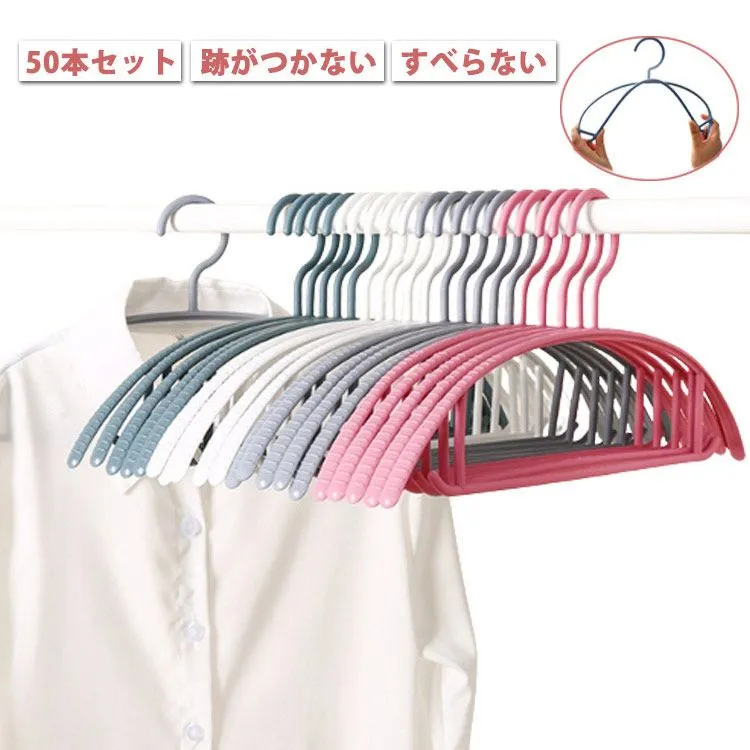【50本セット】跡がつかないハンガー プラスチック ハンガー すべらない おしゃれ アーチハンガー 物干しハンガー 洗濯ハンガー 滑りにくい 滑り止め 型崩れ防止 変形にくい 跡がつかない 収納 衣類#sour3781