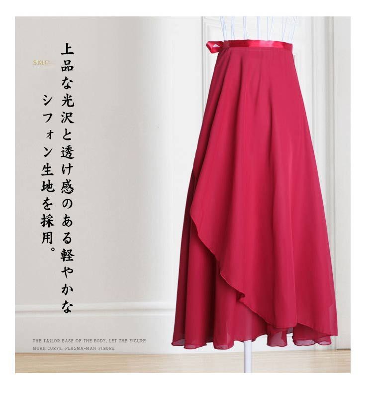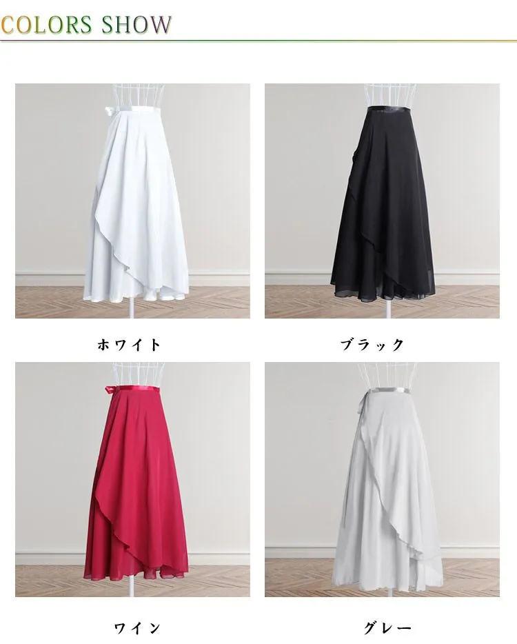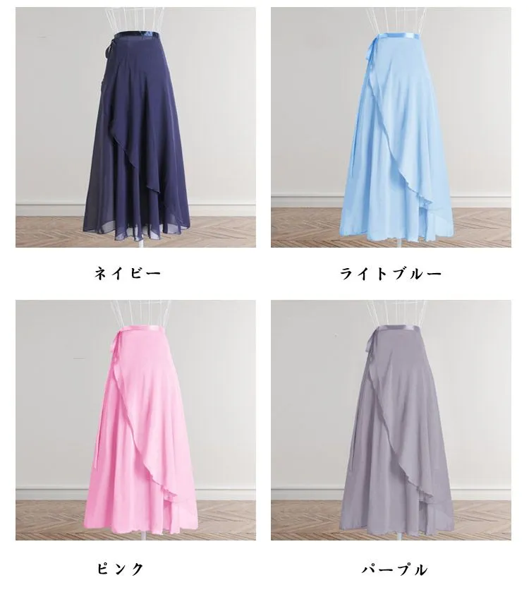 バレエ ロングスカート 全8色 巻きスカート レディース 大人 ジュニア バレエスカート シフォン スカート チュチュ バレエレッスン用 練習用 発表会 プルオンスカート 舞台衣装 ダンススカート お#bon4114