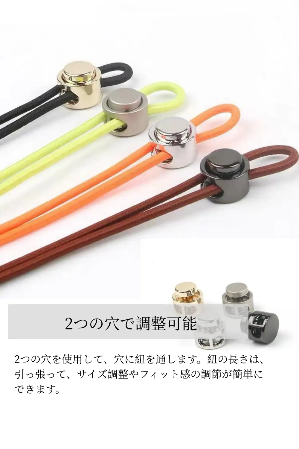 【金属製スプリングバックル】丈夫で丈夫なバネが強いので、紐の長さを留め具として調整することで締めることができます。穴に紐を通します。紐の長さは、引っ張って、自由に調節ができます。