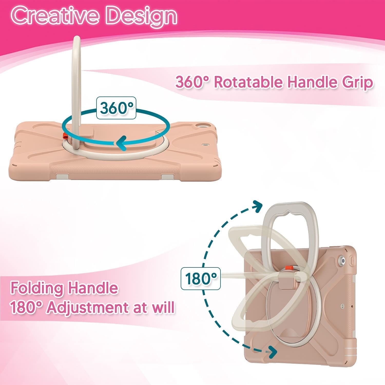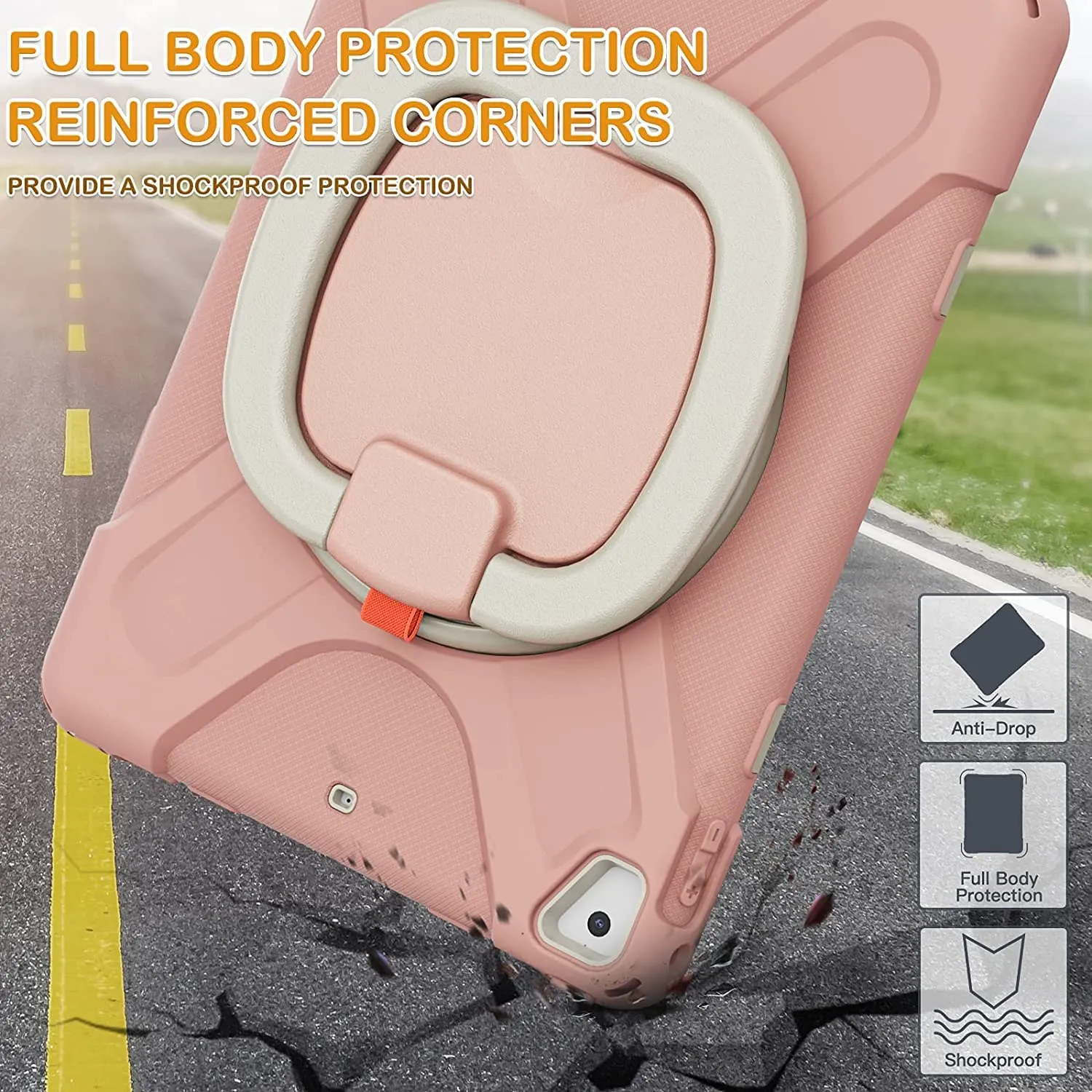 iPad 9.7 ケース iPad air2/iPad 第5世代 2017/iPad 第6世代 2018/iPad Pro 9.7 2016 ケース 耐衝撃 頑丈 米軍MIL資格 スタンド ハンドル付き 虹色 アイパッド Air 2 9.7インチ ケース ペンシル収納 360度回転スタンド 調節可能ハンドストラップと肩掛けー付き 落下防止 アウトドア 子供 仕事用 (iPad6/iPad5/Air2/Pro9.7, コーラルピンク)