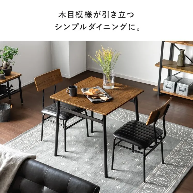 エア・リゾーム ダイニングテーブルセット 2人用 3点 おしゃれ ダイニングセット カフェ テーブルセット 食卓テーブル ヴィンテージ風ダイニング3点セット Levi(リーバイ) 正方形 ブラウン