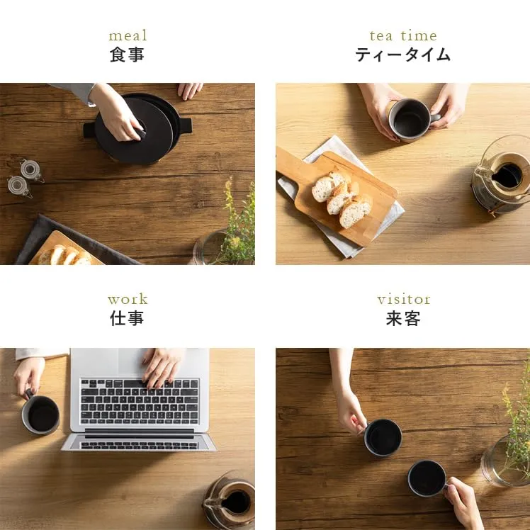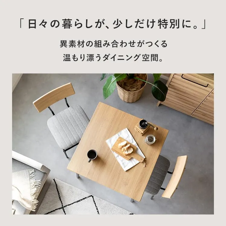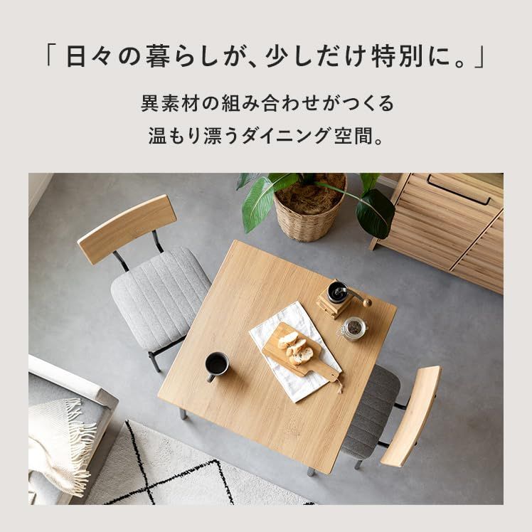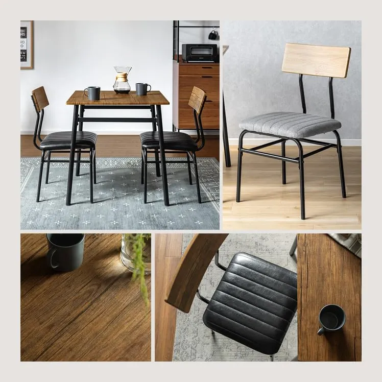 【材質】テーブル/合成樹脂化粧繊維板(PVC)、スチール(粉体塗装)、チェア(レザー)/合成皮革(PU)、チェア(ファブリック)/ポリエステル100%、スチール(粉体塗装)