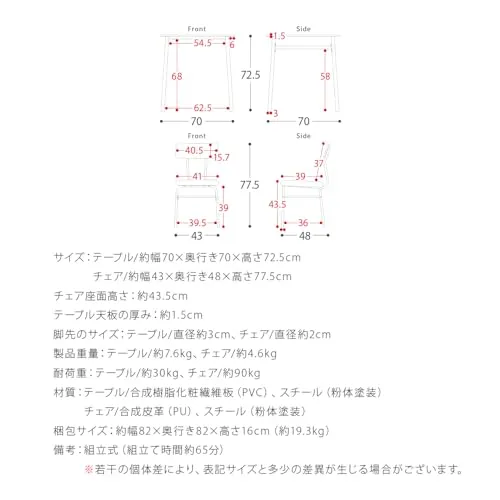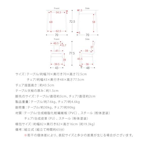 【サイズ】テーブル/約幅70奥行き70高さ72.5cm チェア/約幅43奥行き48高さ77.5cm