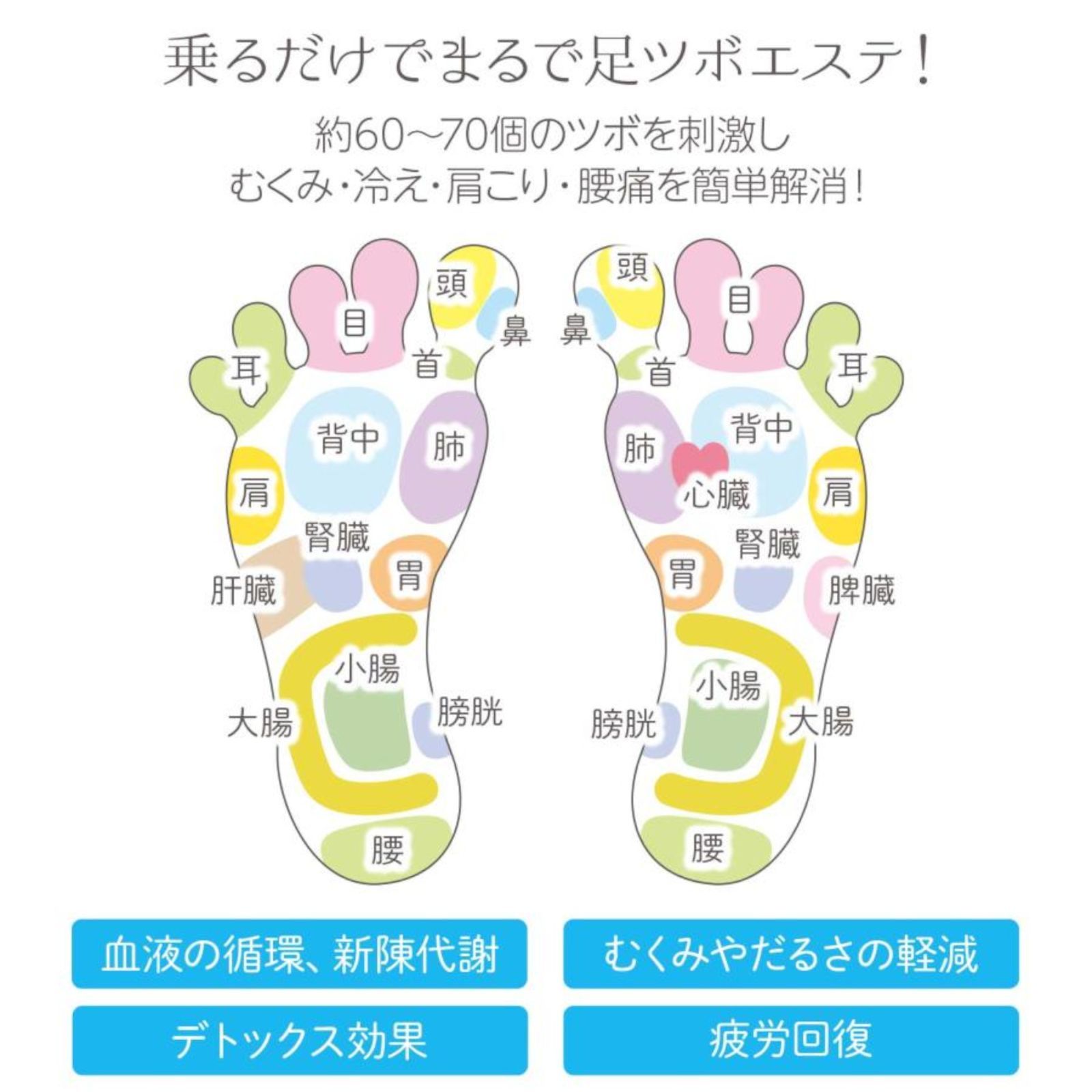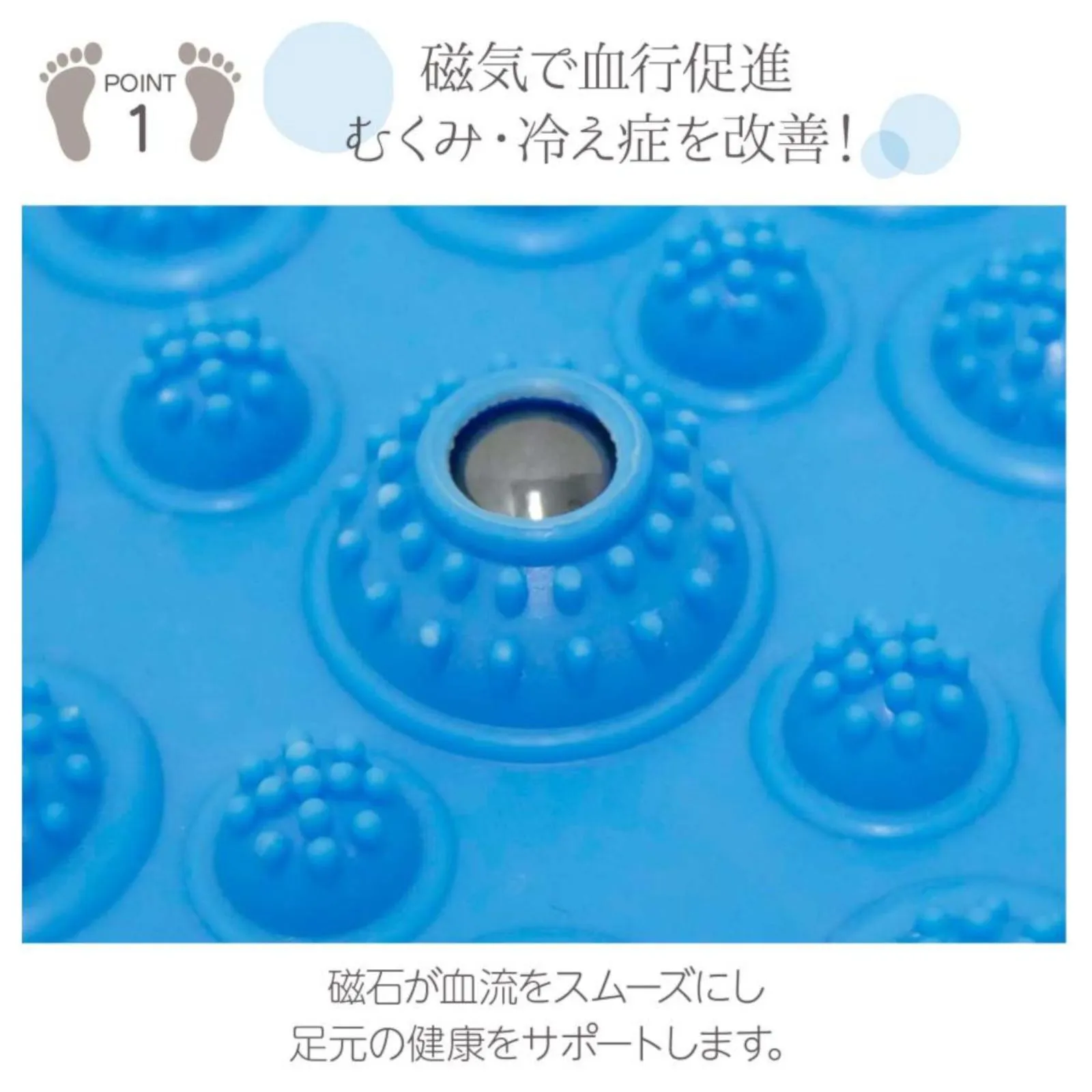 【足ツボを刺激してスッキリ】 乗るだけで、約60〜70個のツボを刺激し、 足裏をマッサージ!肩こり・腰痛・むくみを解消! 磁石付きで血行促進し、むくみ・冷え症を改善!