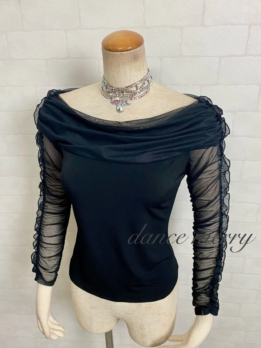 Lサイズ 社交ダンス 黒 トップス レッスン パーティ シンプル 2011 ラテン