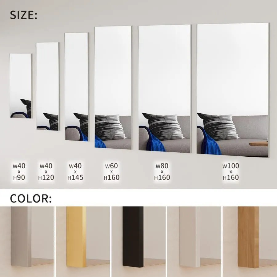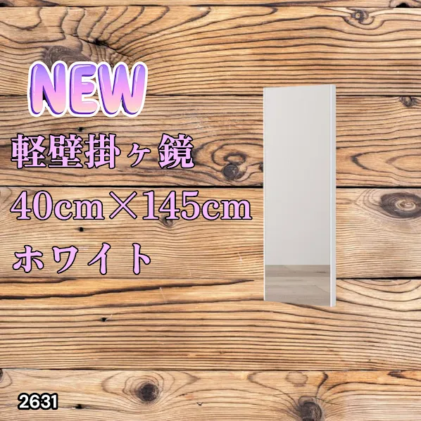 #2631 軽量 壁掛け 割れない鏡 幅40cm×高さ145cm ホワイト フィルム ミラー 鏡 全身鏡 姿見 ダンス 練習 大きい 安全 防災 地震対策 ※一部地域離島別途配送料有