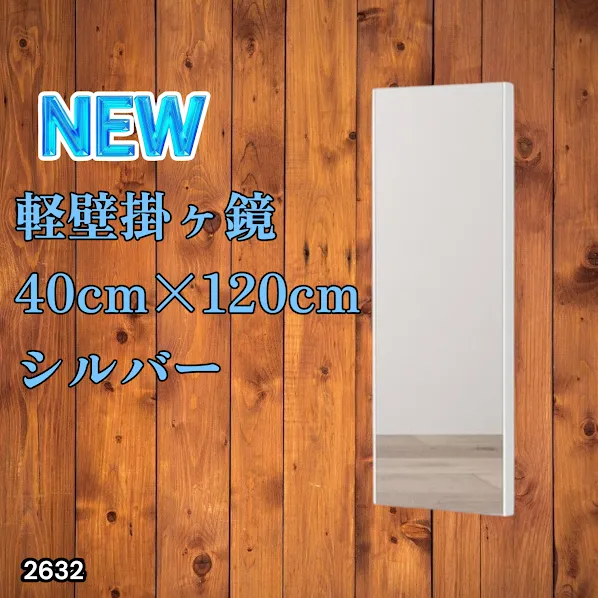 #2632 軽量 壁掛け 割れない鏡 幅40cm×高さ120cm シルバー フィルム ミラー 鏡 全身鏡 姿見 ダンス 練習 大きい 安全 防災 地震対策 ※一部地域離島別途配送料有