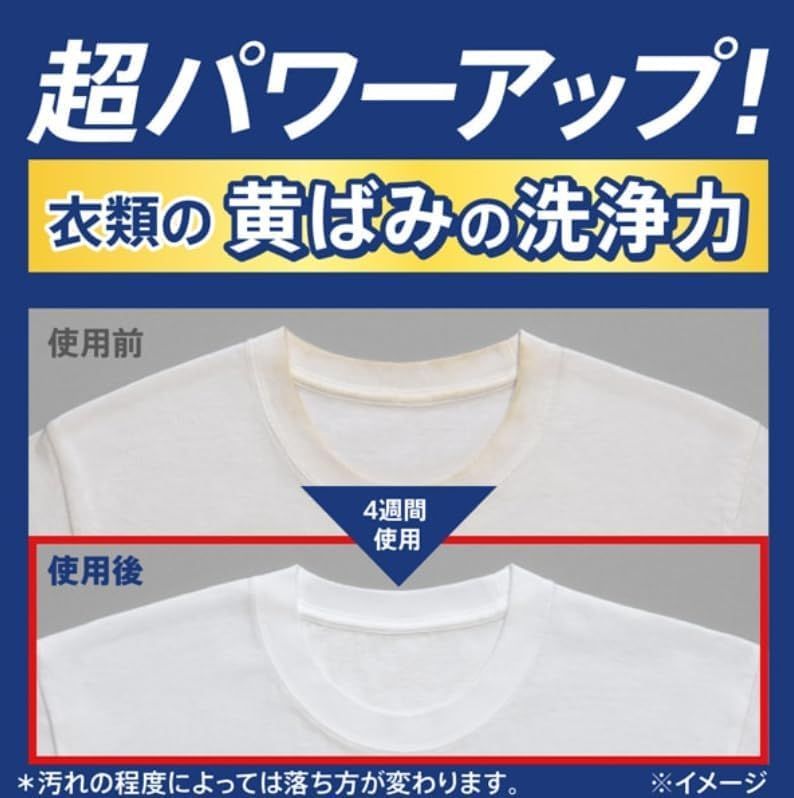強力洗浄力: 100日間蓄積した黄ばみやつけ置き級の頑固な汚れに対応する強力洗浄効果を発揮します抗菌EX処方: