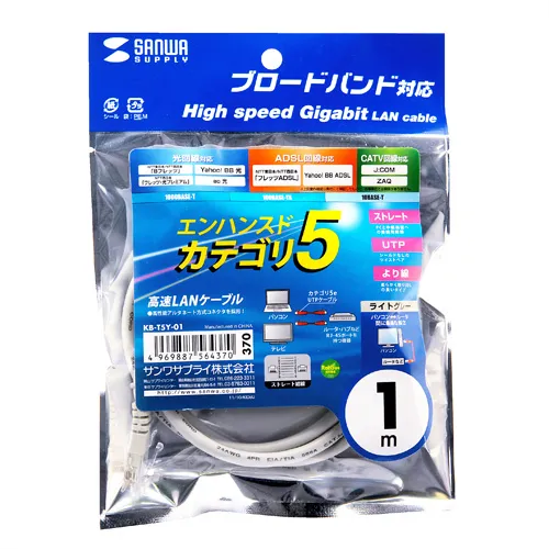 エンハンスドカテゴリ5ヨリセンLANケーブル SANWA SUPPLY KB-T5Y-01 エンハンスドカテゴリ5 1m 1000BASE-T ライトグレー