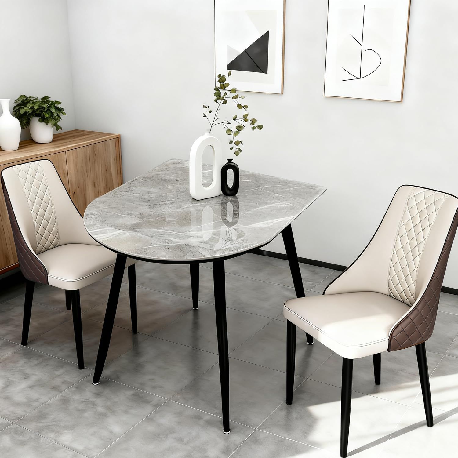 ダイニングテーブルセット 2人用 半円 3点セット ダイニングテーブル 2人 大理石風 セラミック 幅90cm 耐熱・傷・汚れに強い 食卓セット ダイニングチェア 2脚セット 北欧 おしゃれ テーブル 2人用 組立簡単 (大理石柄(艶有り),幅90cm+2脚/