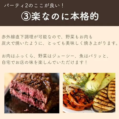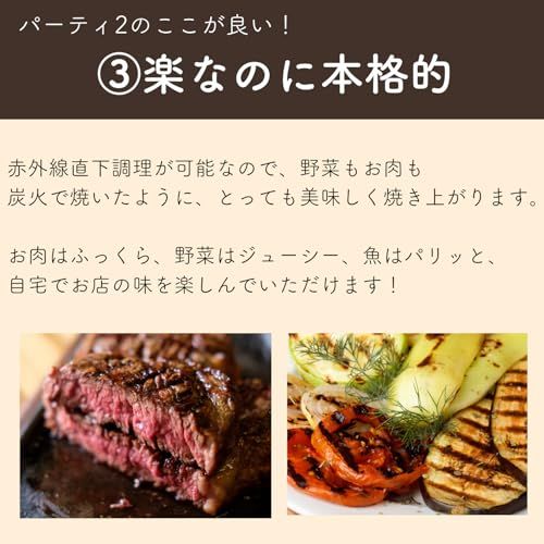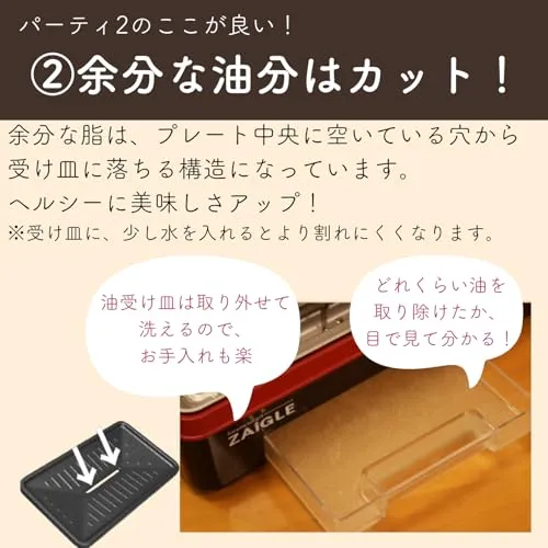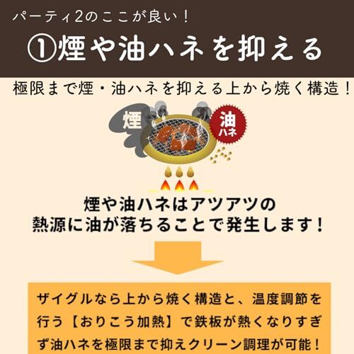 公式 ザイグルparty2 パーティー2 ワイドプレート付き 1~4人 時短調理 煙・油ハネ抑制 油カット 炭火と同じ赤外線直火焼きホットプレート お家焼肉 焼き魚 揚げ物温め直し 卓上 おしゃれ 上下W加熱/