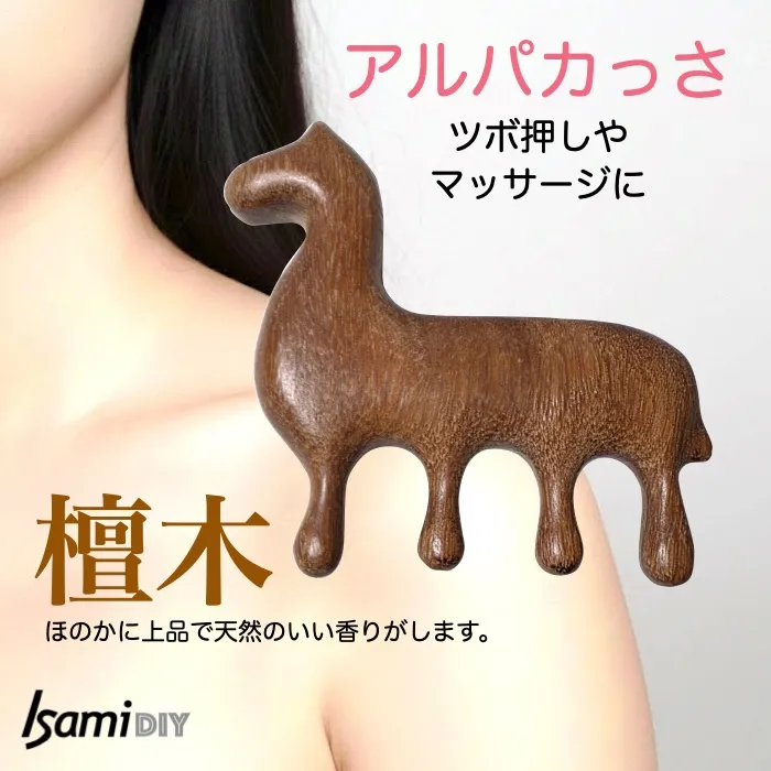 【9日限定SALE】檀木 ツボ押し マッサージかっさ アルパカ アルパカさん 木製