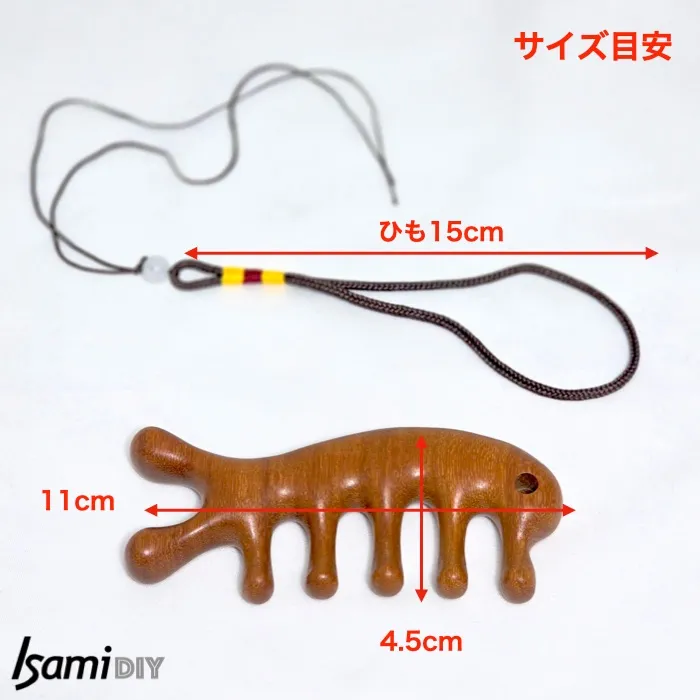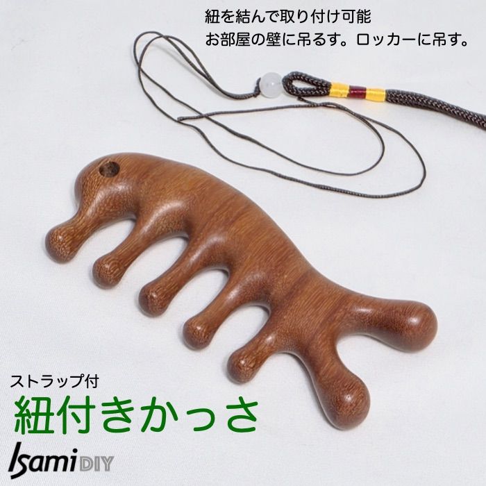 【紐付きかっさ】※画像は後半にあります。 ストラップ紐付き 檀木マッサージ器 紐を通す穴があります。