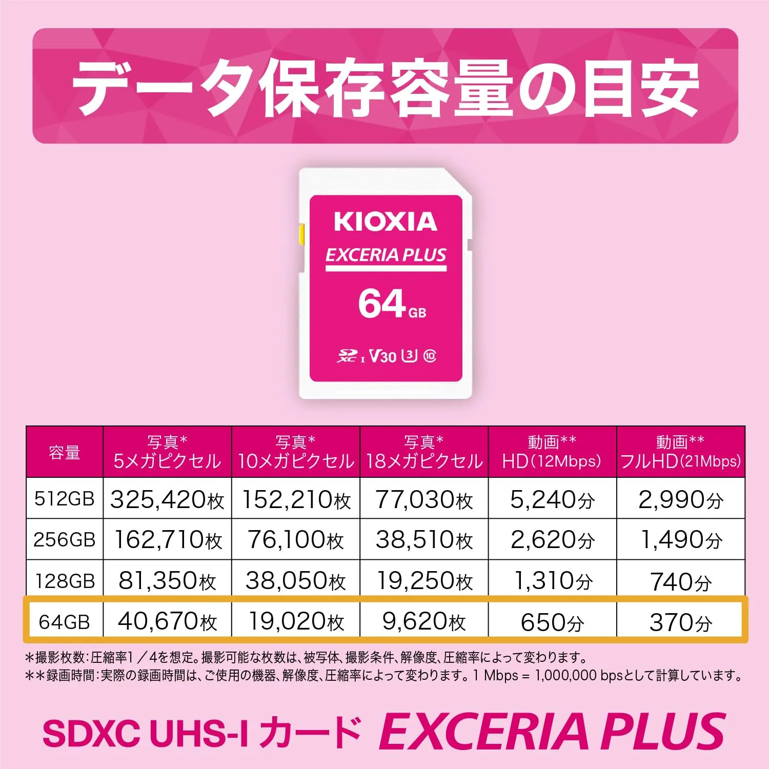 KIOXIA(キオクシア)【日本製】SDカード 64GB EXCERIA PLUS UHS-I U3 V30 Class10 SDXC 最大読出速度100MB/s 最大書込60MB/s 4K対応 国内サポート正規品 [64GB] [EXCERIA PLUS]