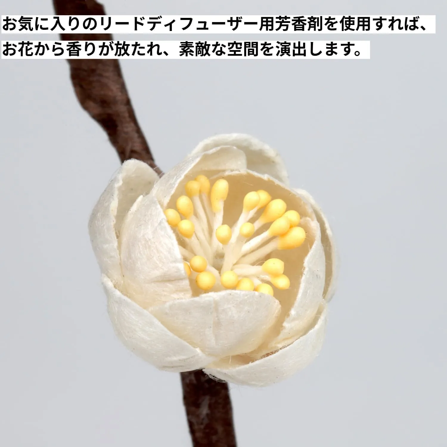 Rose7 手漉き和紙を使用した 花香る フラワー リードディフューザー スティック 造花 フェイクグリーン 人工観葉植物 一輪 (白梅) [1] [白梅]