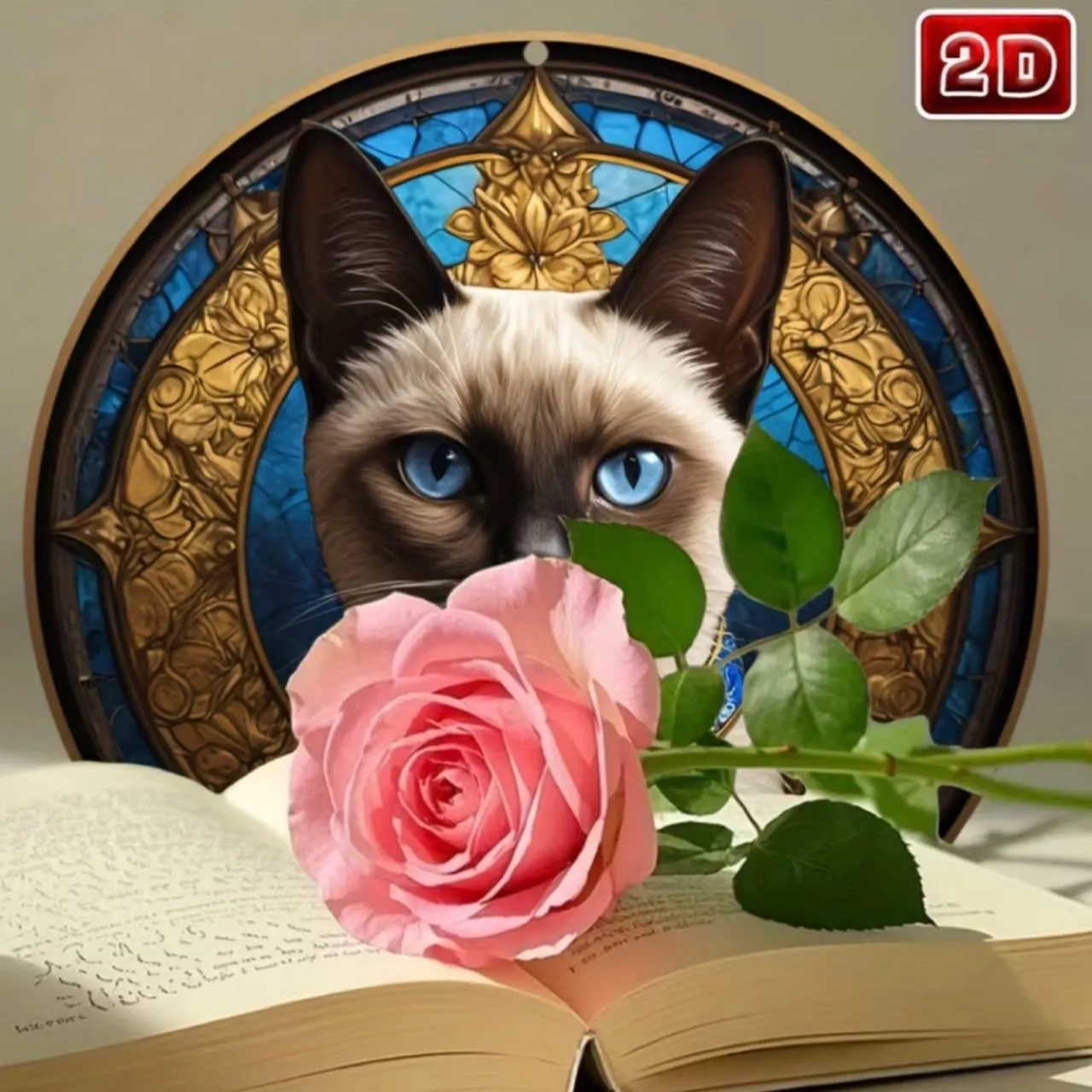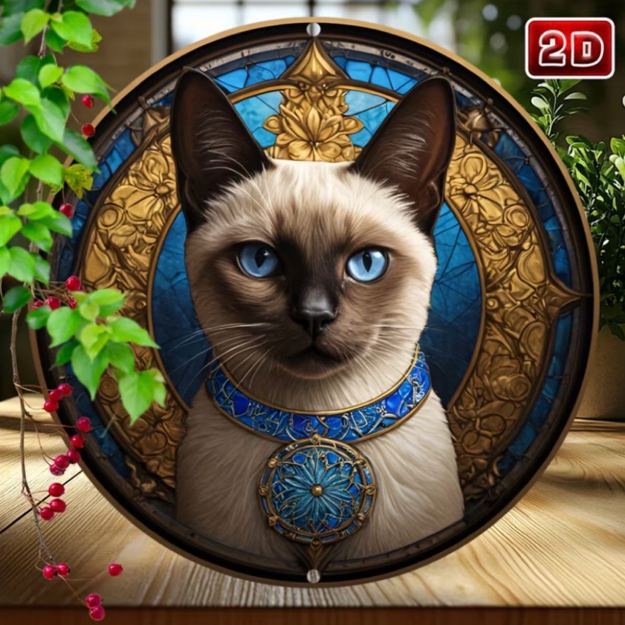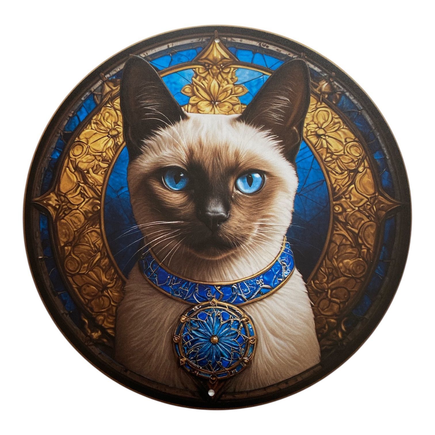 ウェルカムボード ウォールアート 青い瞳の猫 インテリア雑貨 ラウンドボード 猫 インテリア/華やかウォールアート 小物 壁掛け