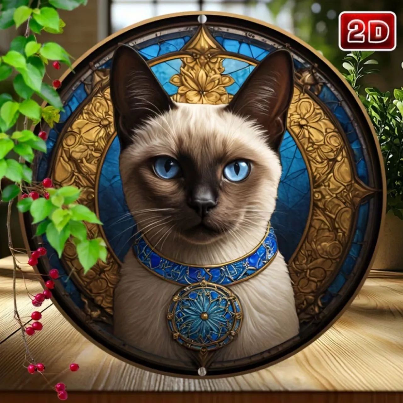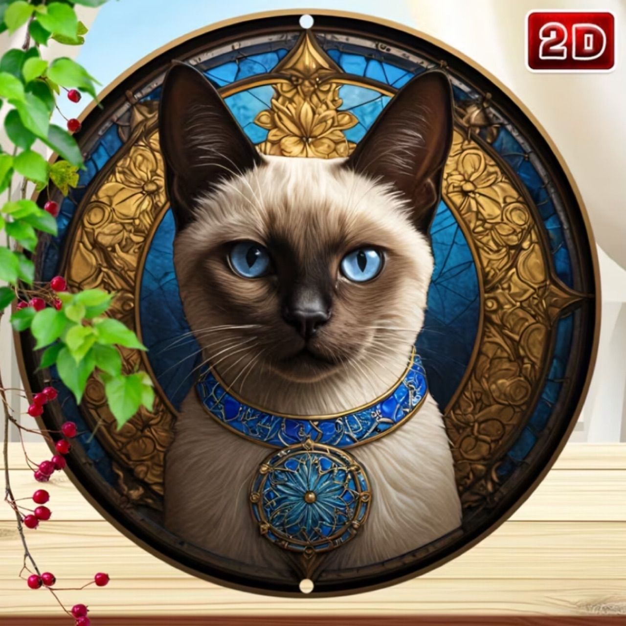 【お願い】 不備がございましたら評価前に取引画面よりコメントお願い致しますm(_ _)m ウエルカムボード 表札 ボード アクリル ドアプレート インテリア小物 アクリル樹脂 壁掛け 置物 猫 ねこネコ リース サンキャッチャー ガーデン インテリア ステンドグラス風 木製 猫 青い瞳の猫