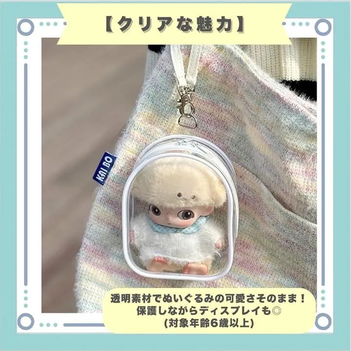 「クリアな魅力」透明素材でぬいぐるみの可愛さそのまま。保護しながらディスプレイも。
