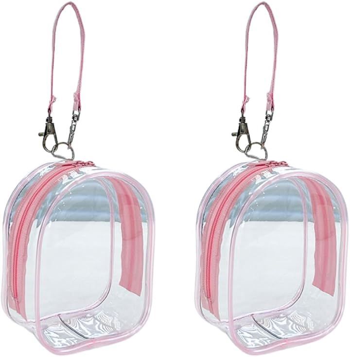 ideastore ぬいぐるみポーチ ストラップ クリア キーホルダー 持ち運び 2個セット (ピンク)