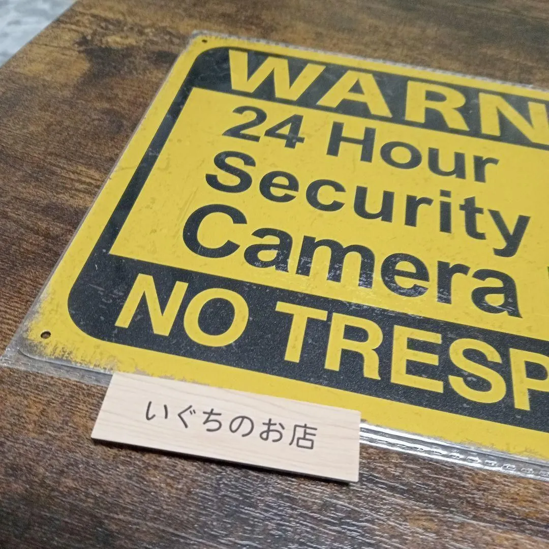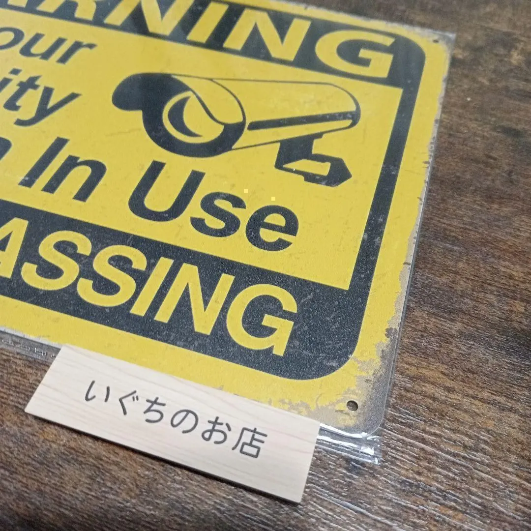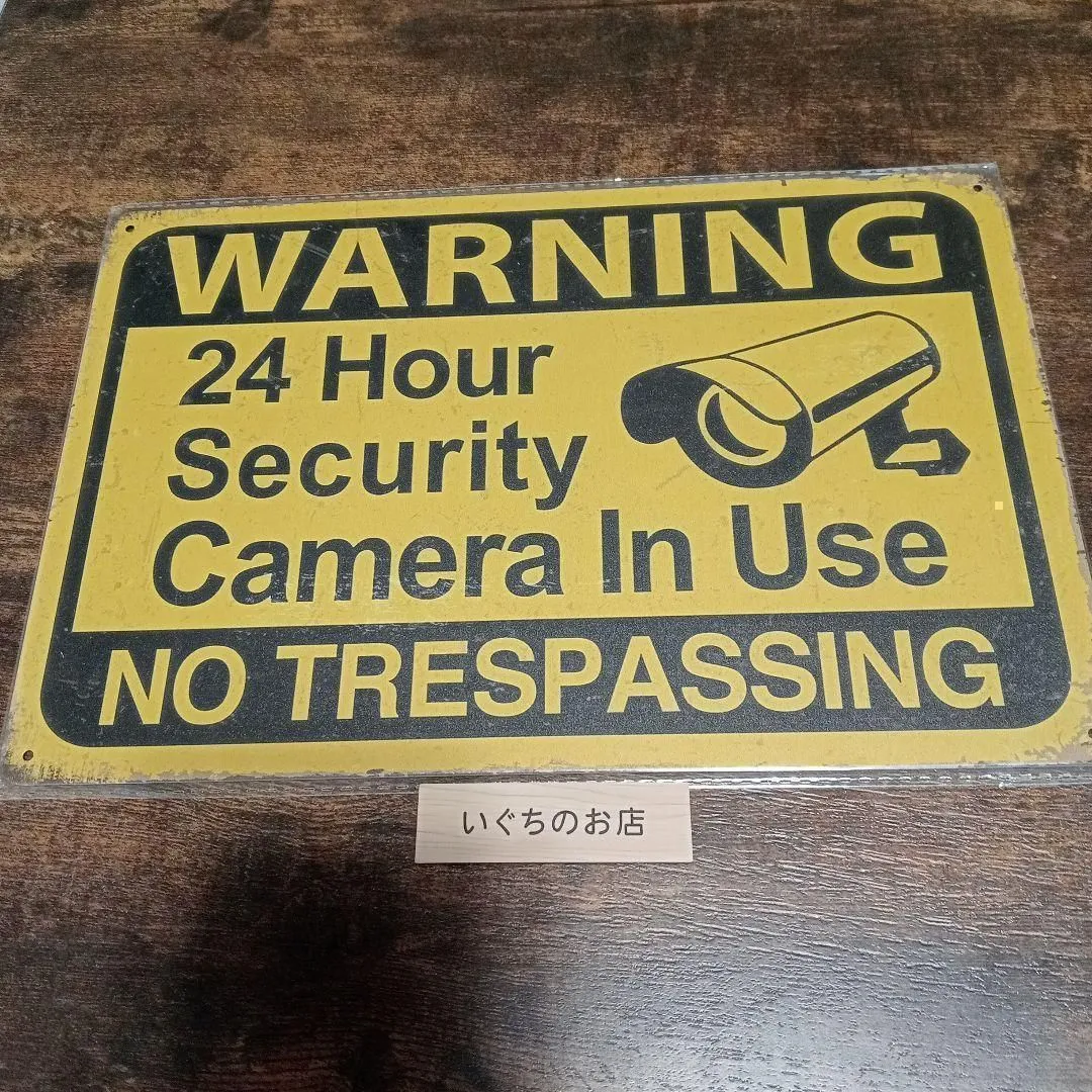 【フォロー割引対象商品!】 フォローをコメントでお知らせいただきますと、50円お値引きいたします。 お気軽にコメントください♪ 監視カメラのナンバープレートです。 この看板があるだけで抑止になります。 四隅に穴があるので画鋲や、針金を通していただきます。 インテリアとしても◎
