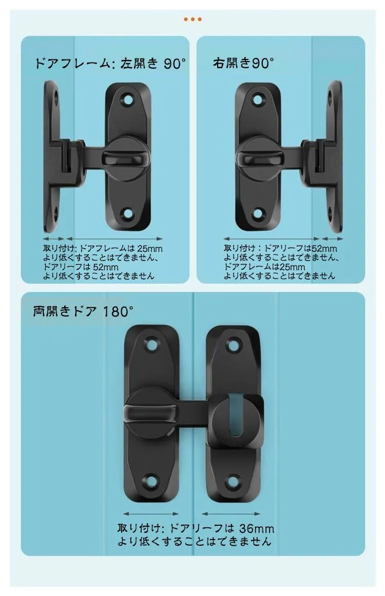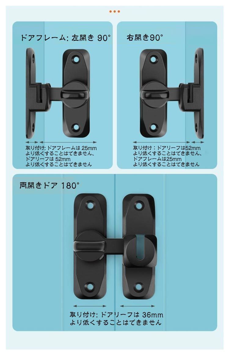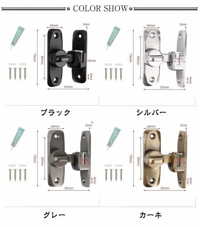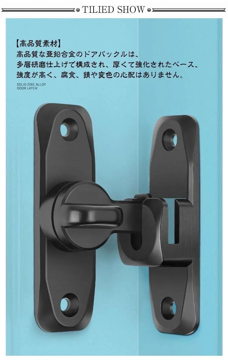 ドアロック 亜鉛合金 90度 回転式 穴あけ不要 ドア留め金ロック ドアロック 引き戸用鍵 フリップラッチロック 180度 後付け 引き戸 後付け スライドロック 窓ロック とびらロック 部屋 取り付#jzxd1816