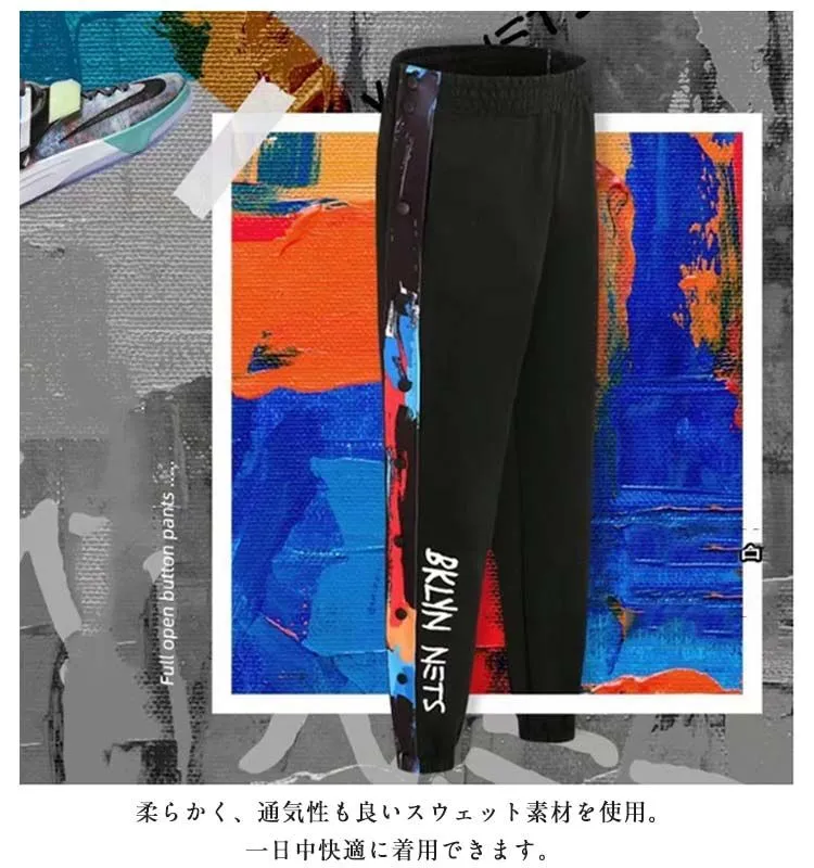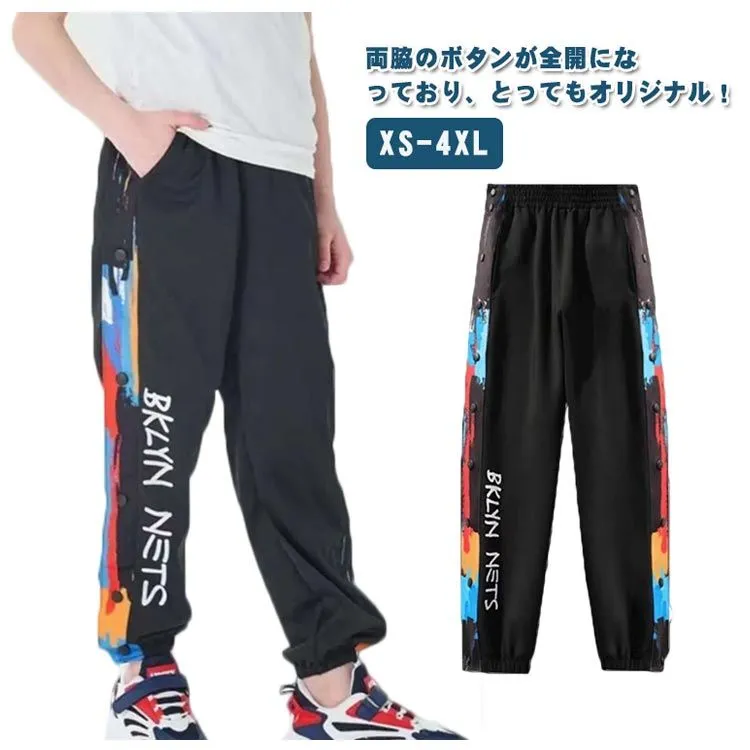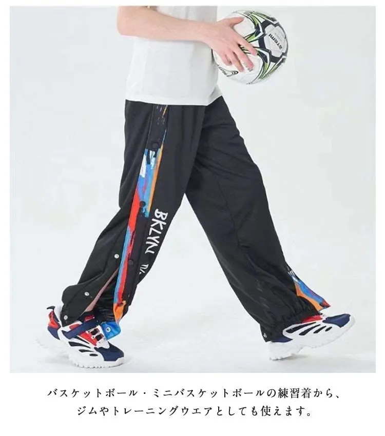裾ボタン サイドボタン バスケットボールパンツ キッズ ジュニア 大人 バスケットパンツ スナップボタン サイドライン 春 秋 冬 長ズボン ロングパンツ ジャージ 下 男性 女性 メンズ レディース#wunib1606