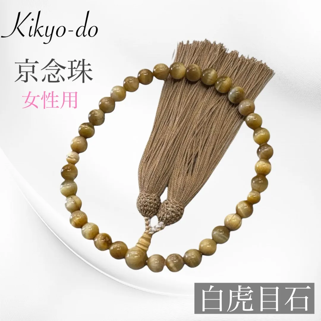 京念珠 白虎目石 数珠 女性用 枝垂房 念珠 片手念珠