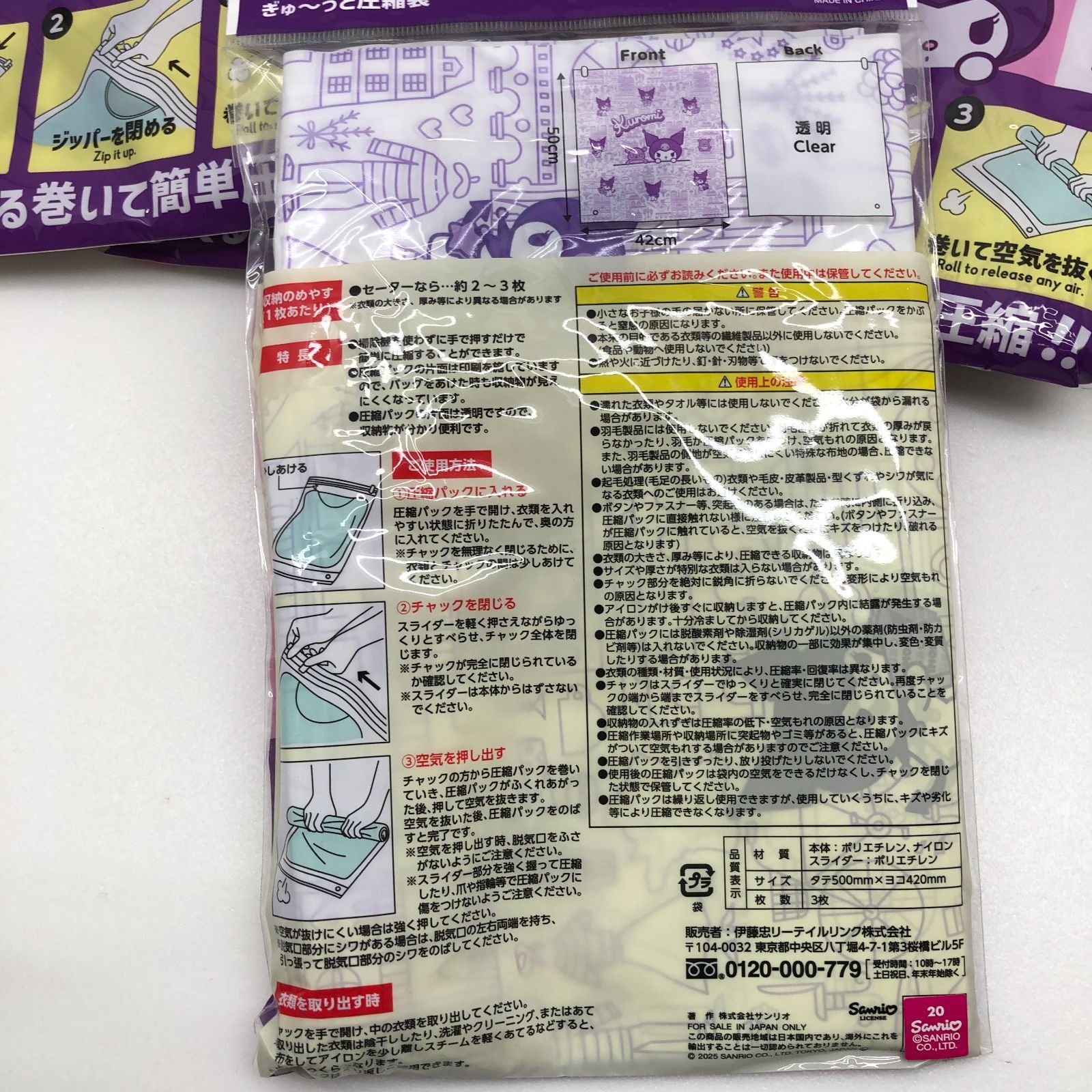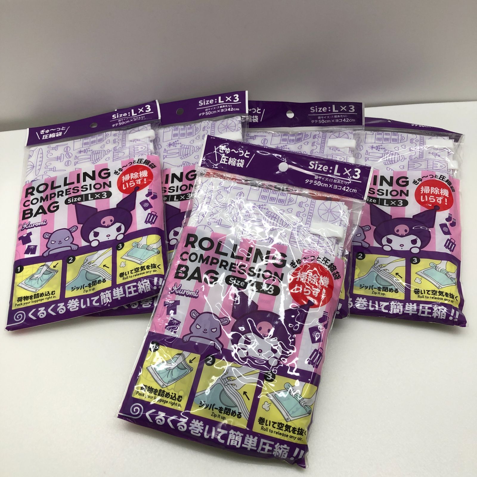 【新品】衣類圧縮袋 サイズL×3枚入り 5個セット サンリオ クロミ SGAW26-0345