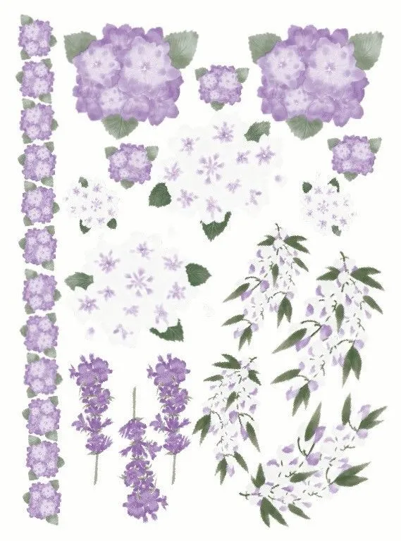 ポーセラーツ 転写紙 【ガラス用】藤と紫陽花パープル転写紙(ポーセラーツ ポーセリンアート 花柄 転写紙 紫)