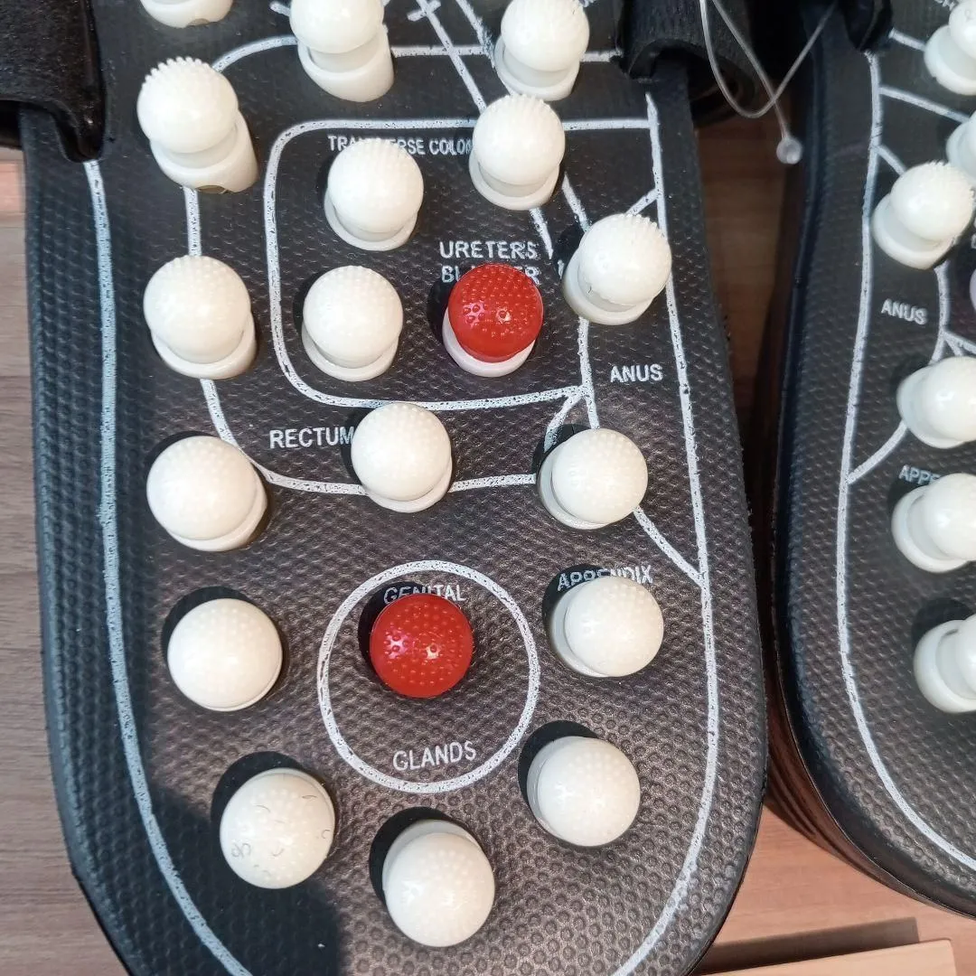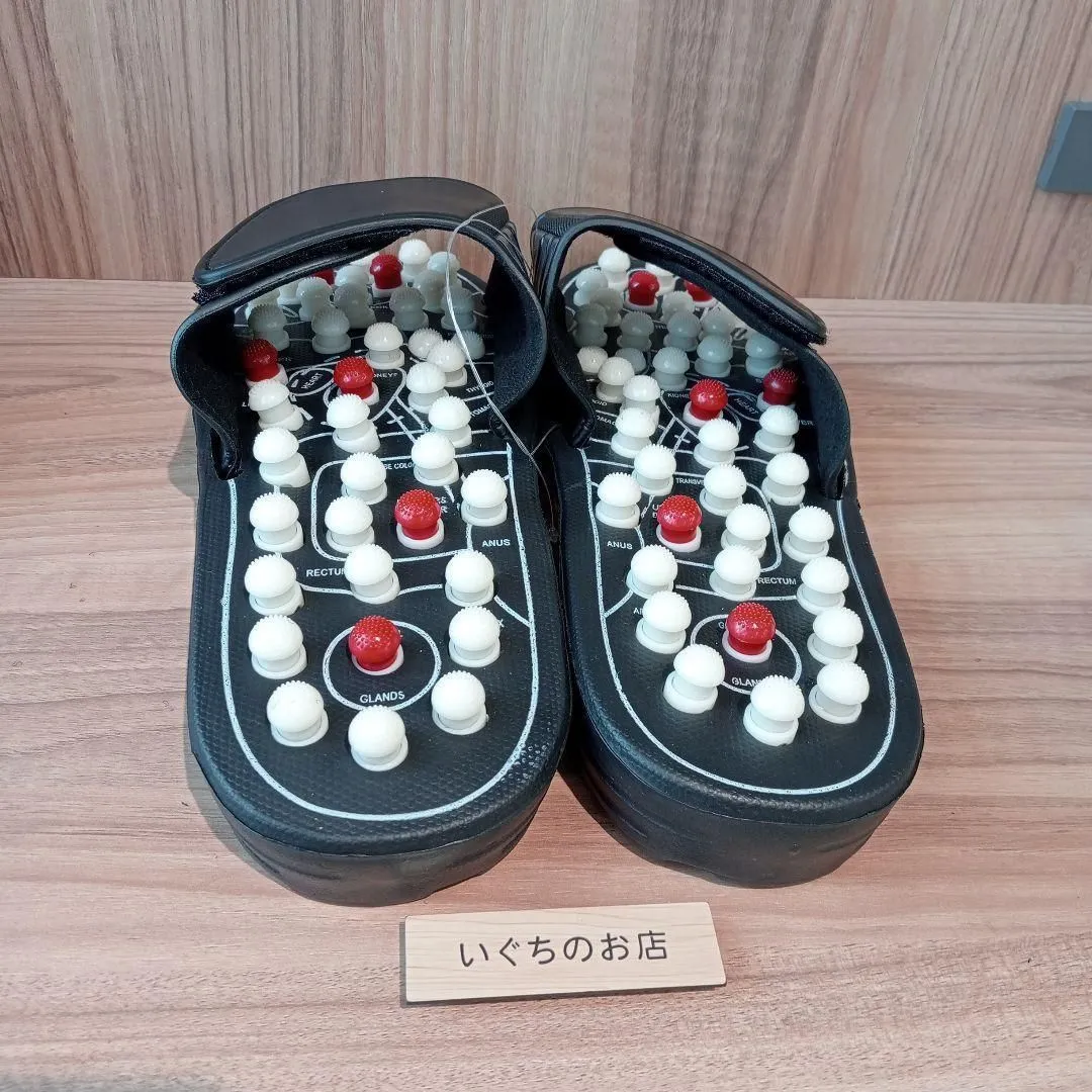 【フォロー割引対象商品!】 フォローをコメントでお知らせいただきますと、50円お値引きいたします。 お気軽にコメントください♪ ※もともとお安く出品しているため、お値下げはフォロー割のみとさせていただいております(^^) 3980→2280 ~~~~~~~~~~~~~~~~~~~~~~~~~ ◎あんま、指圧の代用としてご使用いただけます。 ◎足裏の刺激により血行をよくするとされています ◎足の筋肉のコリをほぐすのに◎ ◎履くだけ簡単、リフレッシュタイムにぴったり! ボタンが沈むのでとても気持ちがよいです(*^_^*)