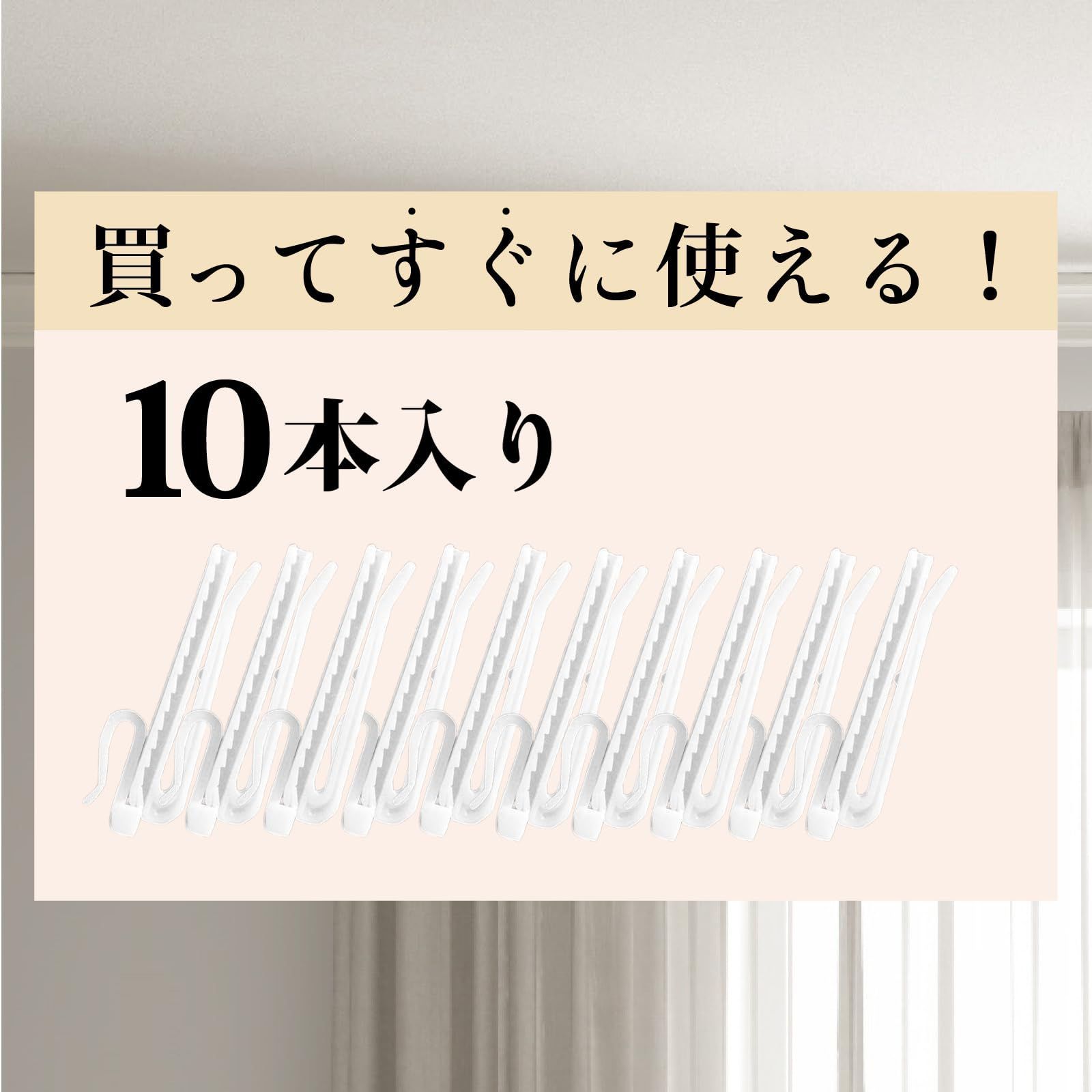 10本 アジャスターフック 75mm ●検品済 カーテンフック ホワイト Safewings 【高耐久】 (10本(白))