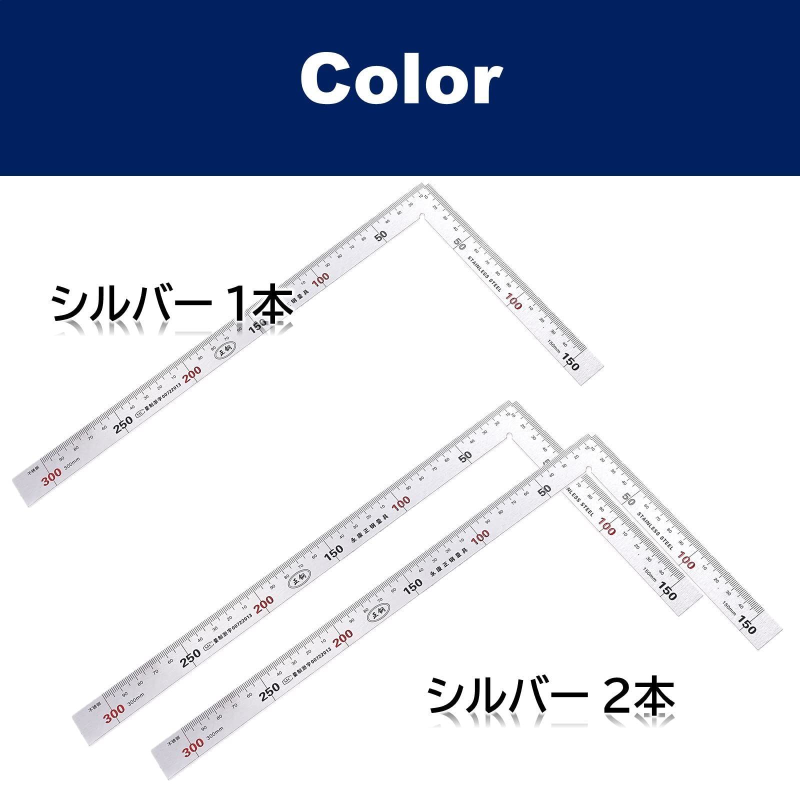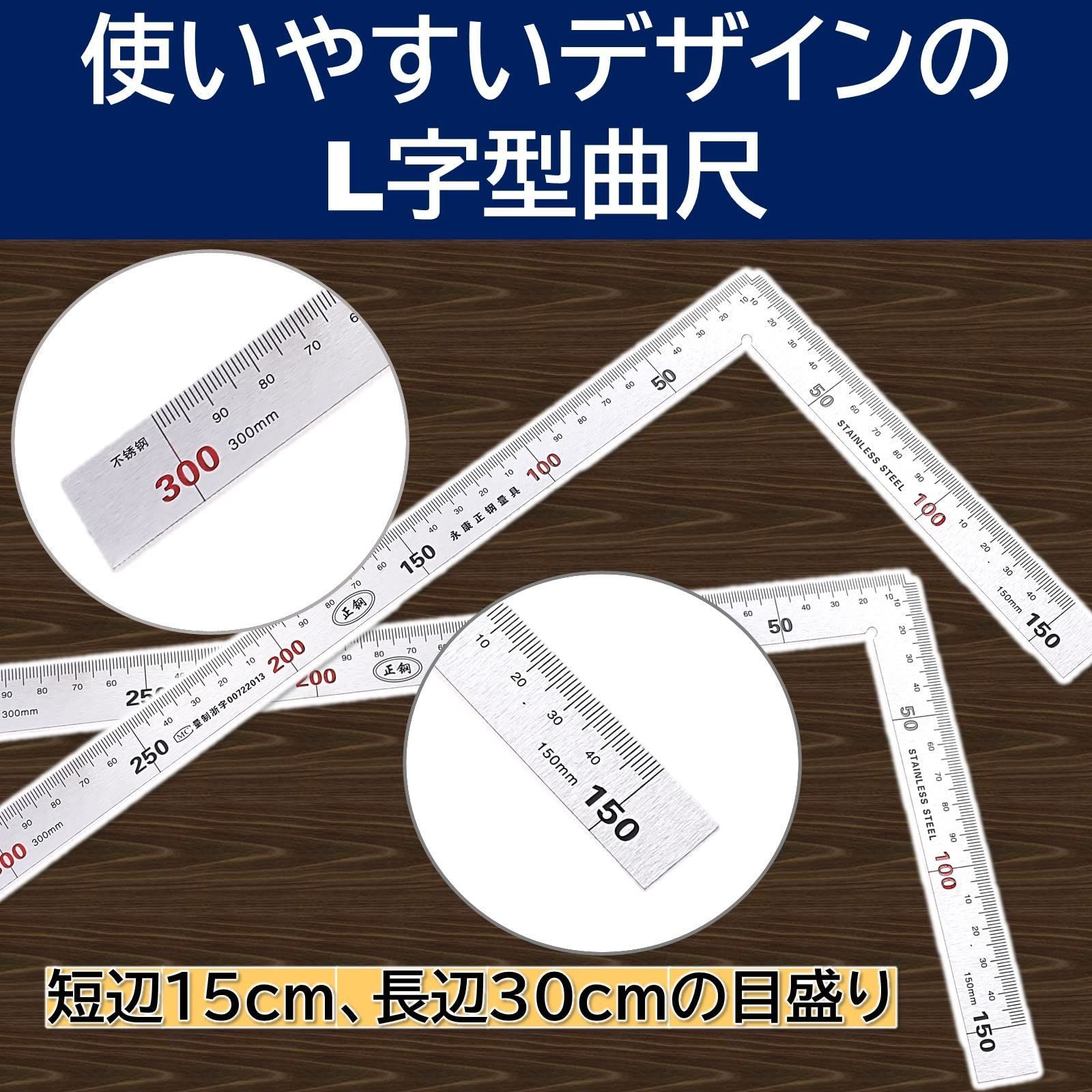 ルボナリエ 曲尺 矩尺 指矩 差金 直角 厚手 広巾 ステンレス 大工 カーペンター DIY 15cm 30cm (シルバー 1本)