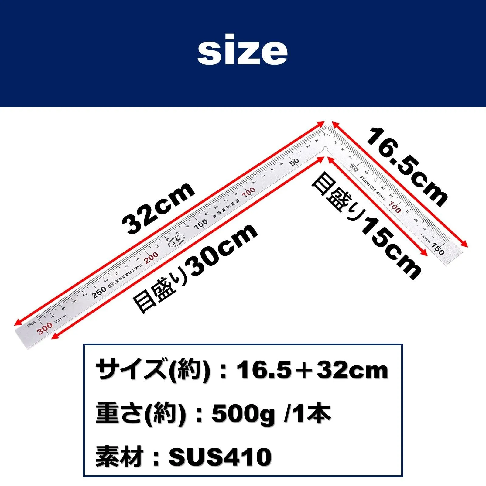 (シルバー 30cm 15cm DIY カーペンター 大工 1本) ステンレス 広巾 厚手 直角 差金 指矩 矩尺 曲尺 ルボナリエ