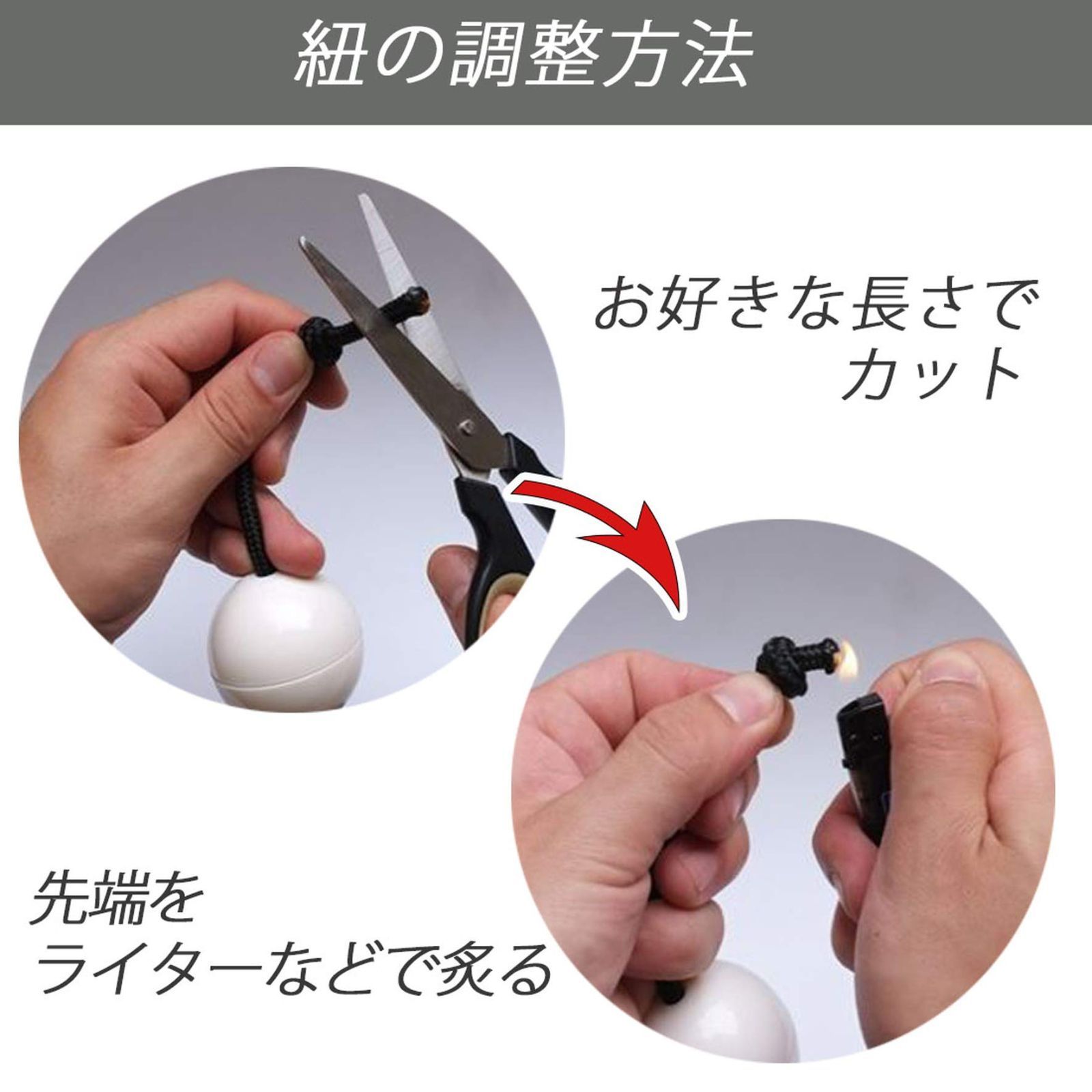 紐の長さを調節します。ピースサインにした人差し指と中指の間にパチカを引っ掛け、下側のパチカを小指の付け根から回して持ちます。手の甲側に指が二本入るくらいに調整し紐の端をライターであぶり固定します。
