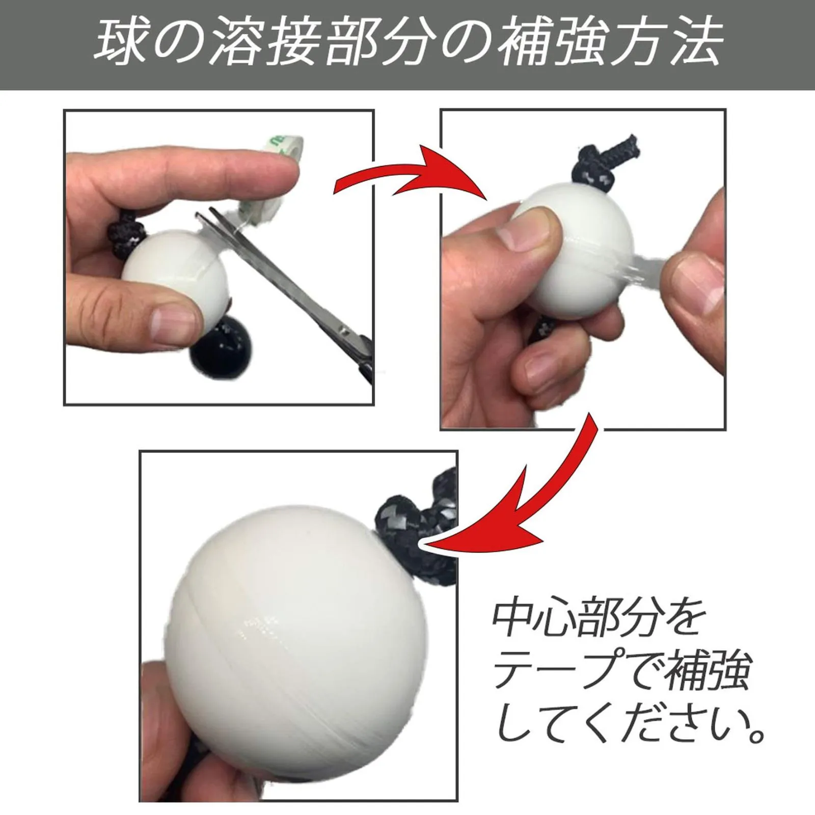 パチカは2個セット、プラスチック製で耐久性があります。使用前にプラスチックの継ぎ目部分にセロハンテープなどを巻いて補強をします。中の砂が漏れるのを防ぎ、キレのある良い音になります。
